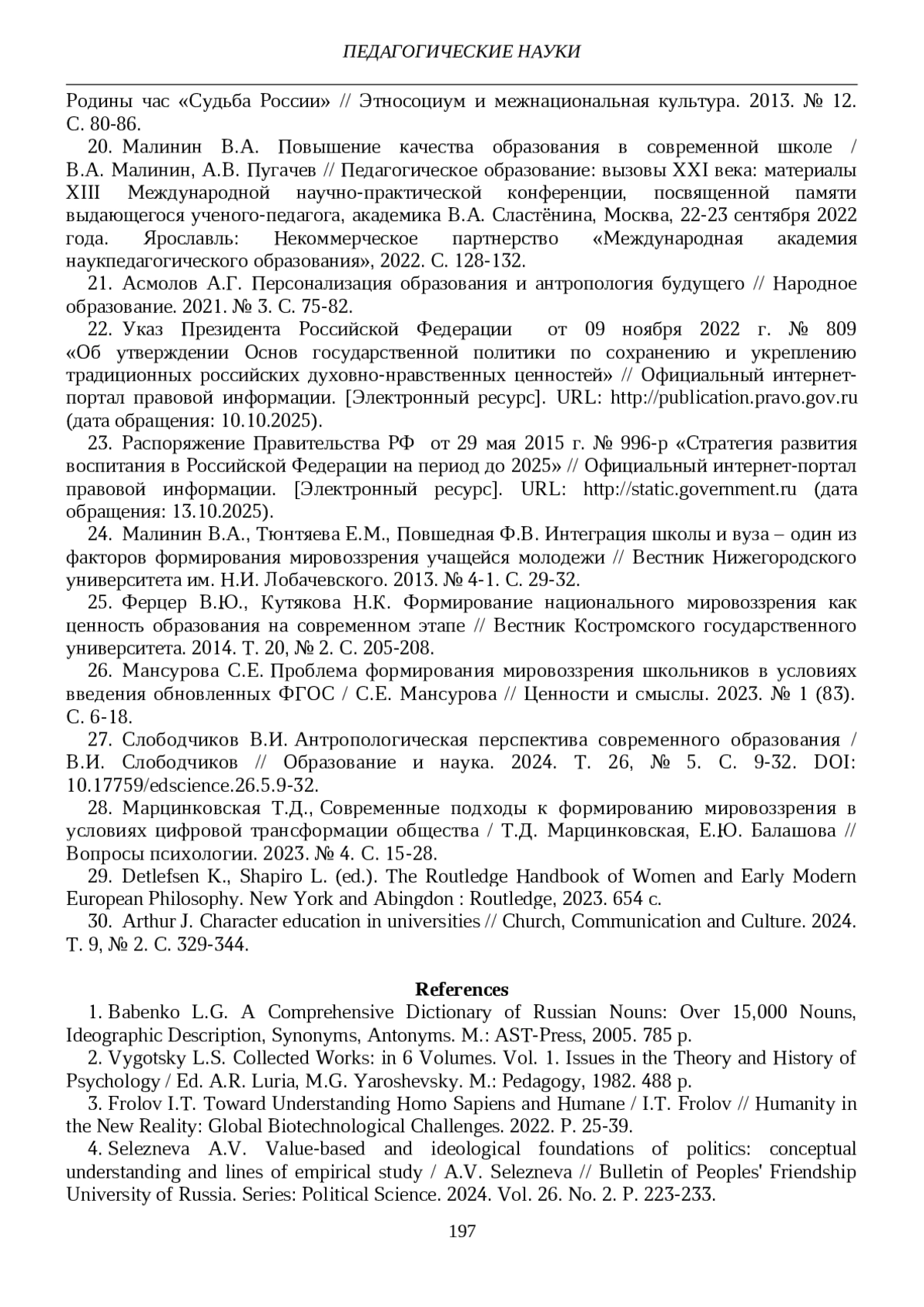 22. Указ Президента Российской Федерации от 09 ноября 2022 г. № 809 “Об утверждении Основ государственной политики по сохранению и укреплению традиционных российских духовно-нравственных ценностей” // Официальный интернет-портал правовой информации. [Электронный ресурс]. URL: http://publication.pravo.gov.ru (дата обращения: 10.10.2025).