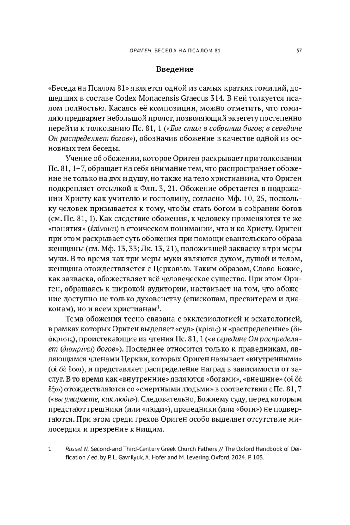 45. Russel N. Second- and Third-Century Greek Church Fathers // The Oxford Handbook of Deification / ed. by P. L. Gavrilyuk, A. Hofer and M. Levering. Oxford: Oxford University Press, 2024. P. 95-107.