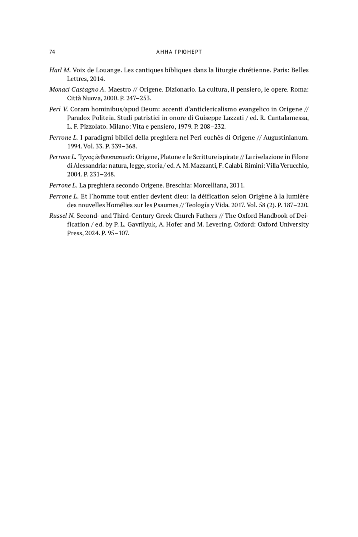 43. Perrone L. La preghiera secondo Origene. Breschia: Morcelliana, 2011.