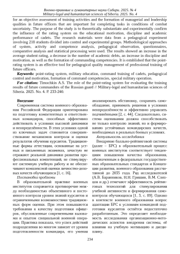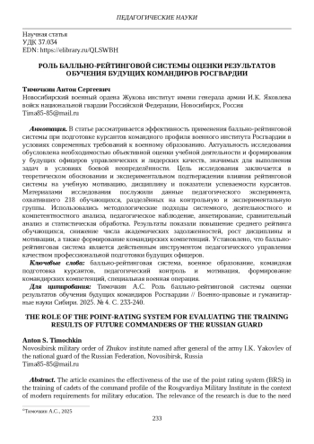 Актуальность исследования обусловлена необходимостью объективной оценки учебной деятельности и формирования у будущих офицеров управленческих и лидерских качеств, значимых для выполнения задач в условиях боевой неопределённости.
