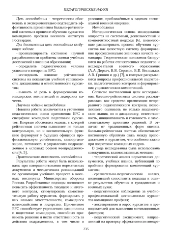 Установлено, что балльно-рейтинговая система является действенным инструментом педагогического управления качеством профессиональной подготовки будущих офицеров.