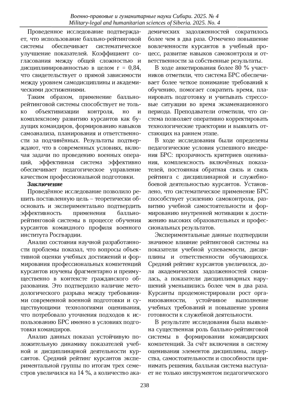 14. Цыганков В.И., Мухин С.А. Педагогический контроль в системе подготовки командиров Росгвардии // Наука и военная безопасность. 2023. № 4. С. 55-59.