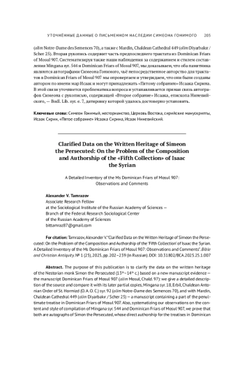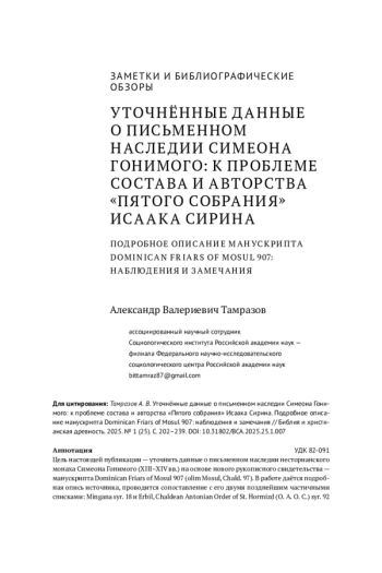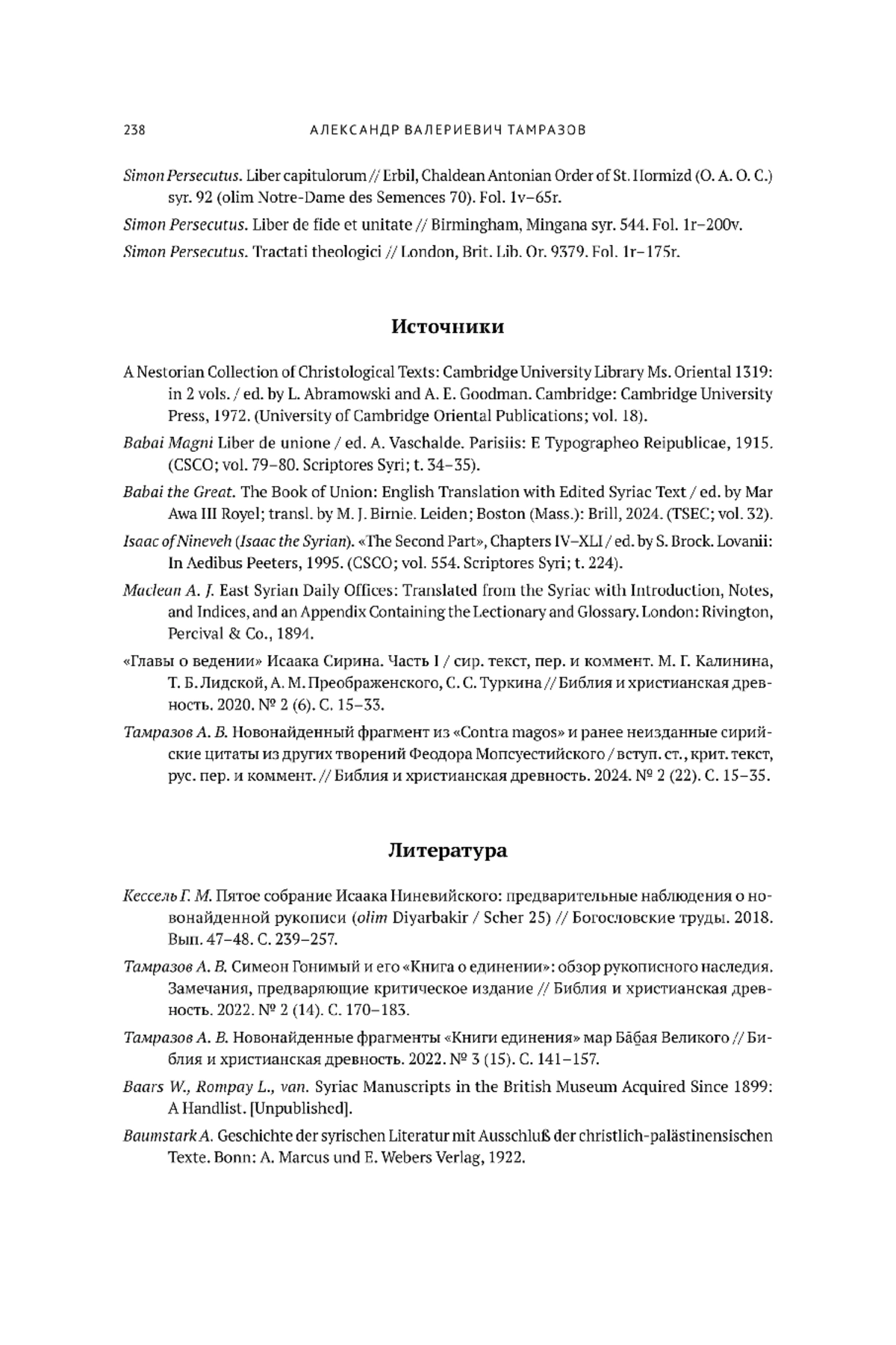 17. Тамразов А. В. Симеон Гонимый и его “Книга о единении”: обзор рукописного наследия. Замечания, предваряющие критическое издание // Библия и христианская древность. 2022. № 2 (14). С. 170-183. EDN: XKYMRU