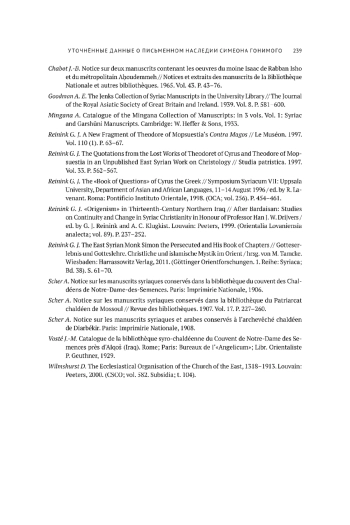 28. Reinink G. J. The East Syrian Monk Simon the Persecuted and His Book of Chapters // Gotteserlebnis und Gotteslehre. Christliche und islamische Mystik im Orient / hrsg. von M. Tamcke. Wiesbaden: Harrassowitz Verlag, 2011. (Göttinger Orientforschungen. 1. Reihe: Syriaca; Bd. 38). S. 61-70.