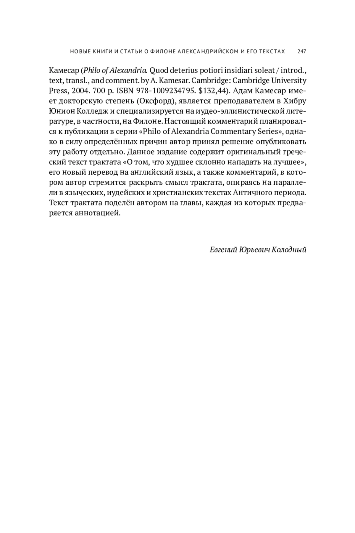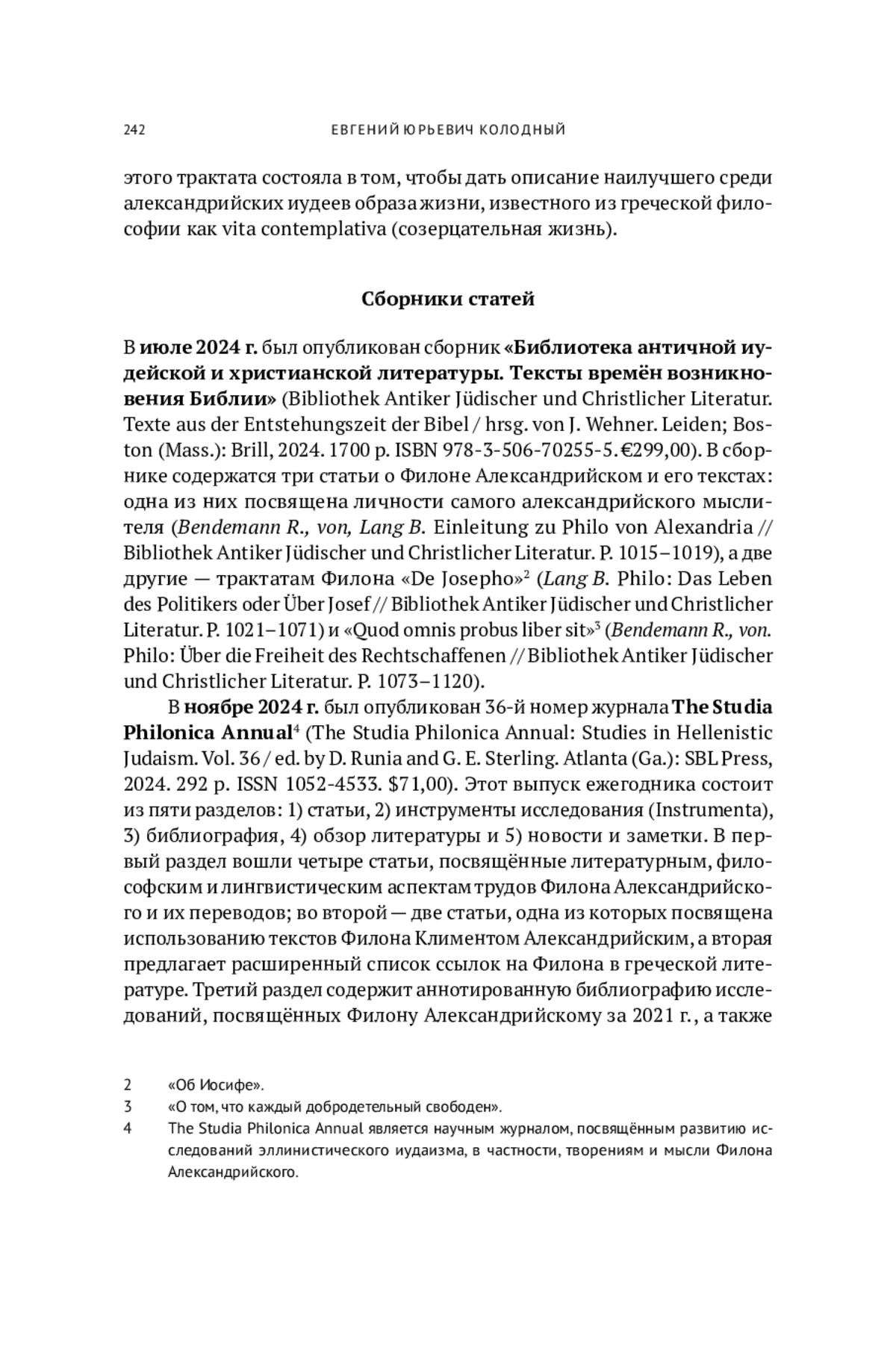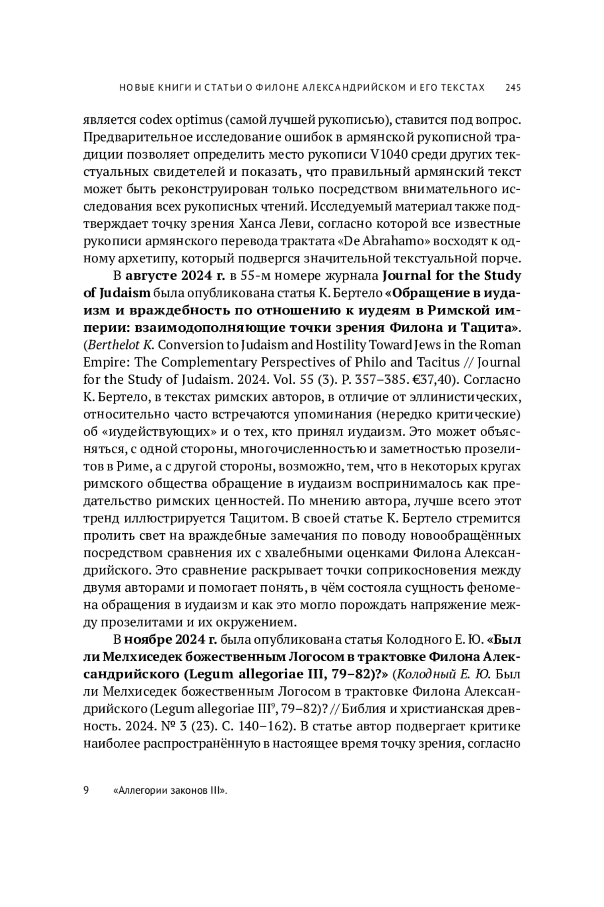 В настоящем обзоре мы укажем наиболее важные публикации о Филоне Александрийском, изданные в 2024 г., а также планируемые к печати в начале 2025 г. Обзор поделён на четыре части: монографии, сборники статей, отдельные статьи и комментарии. В рамках каждого раздела публикации приводятся в хронологическом порядке в соответствии с датой выхода.