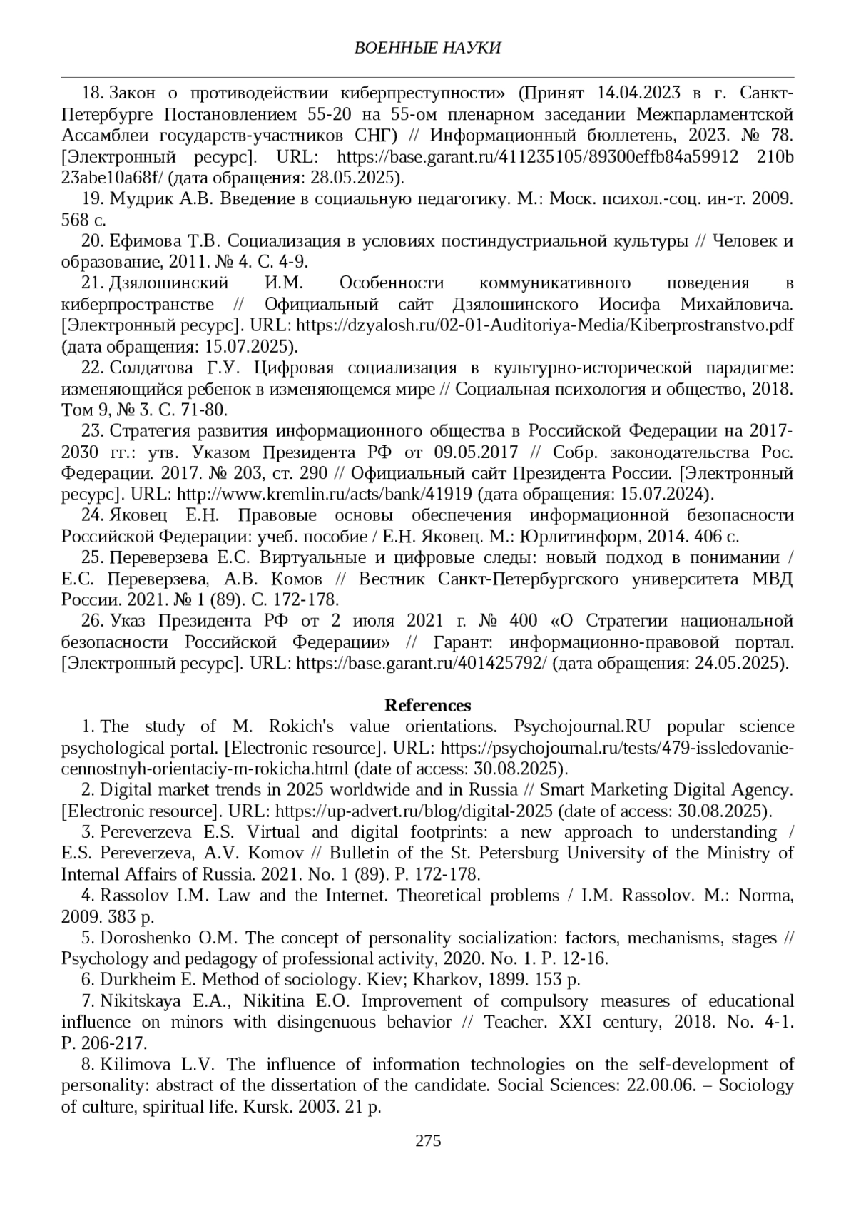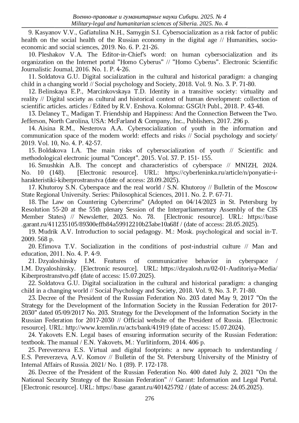 16. Смушкин А.Б. Понятие и характеристики киберпространства // МНИЖ, 2024. № 10 (148). [Электронный ресурс]. URL: https://cyberleninka.ru/article/n/ponyatie-i-harakteristiki-kiberprostranstva (дата обращения: 28.09.2025). EDN: INDLUD