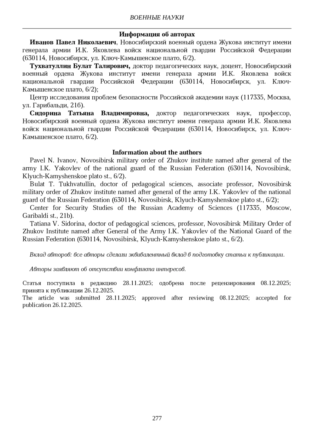 В работе приводятся рекомендации по оптимизации кадровой политики и системы мотивации, а также подчеркивается важность формирования междисциплинарных компетенций и психологической устойчивости офицеров.