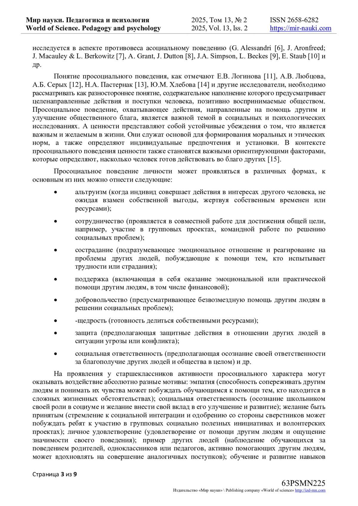 5. Логвинова, М.И. Просоциальное поведение: социально-психологический анализ / М.И. Логвинова // Ученые записки. Электронный научный журнал Курского государственного университета. - 2021. - № 1(57). - С. 264-270. EDN: RQDWGL