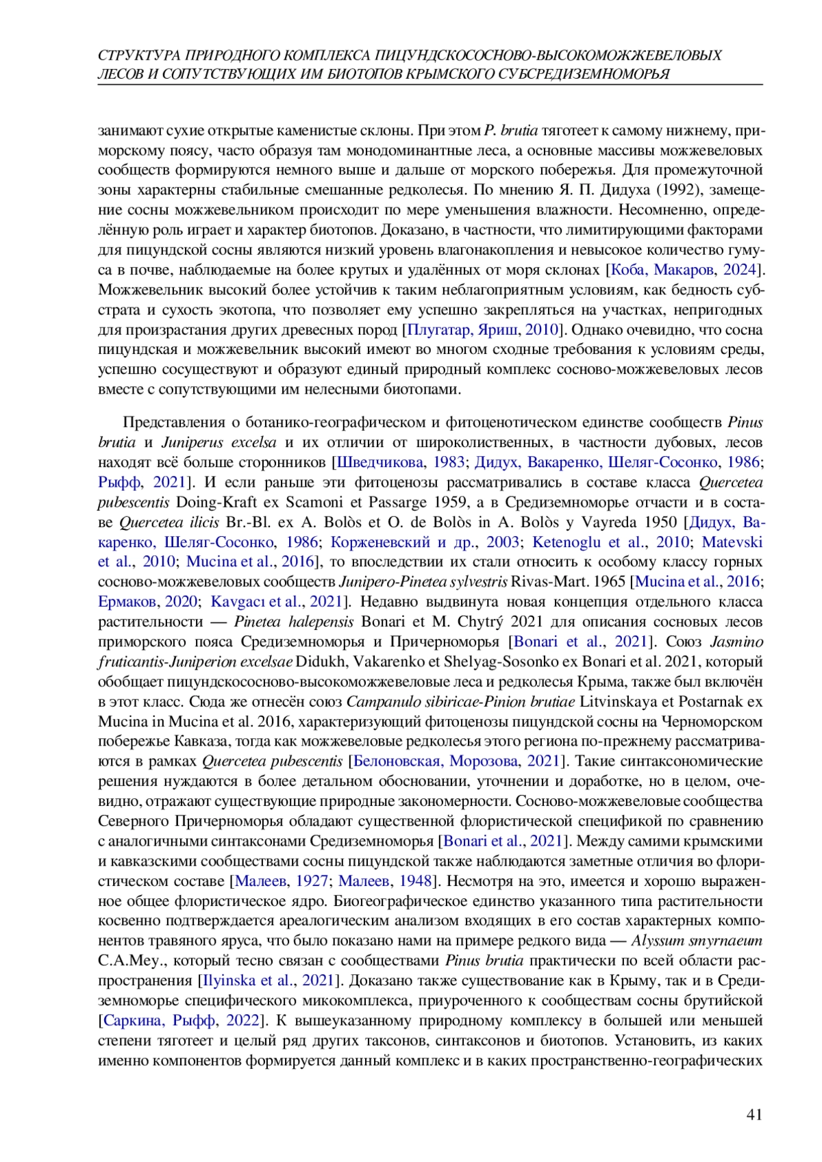 6. Дидух Я. П., Вакаренко Л. П., Шеляг-Сосонко Ю. Р. Флористическая классификация хвойных лесов нижнего пояса растительности Горного Крыма // Ботанический журнал. - 1986. - Т. 71, № 3. - С. 281-291.