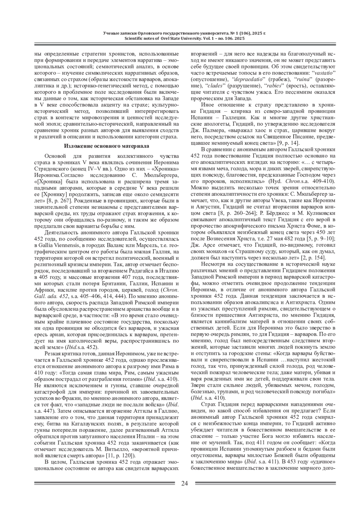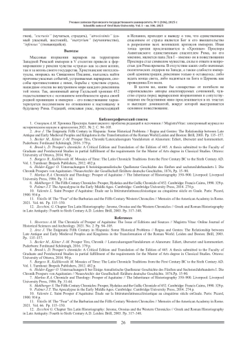 11. Vitiello M. The “Fear” of the Barbarian and the Fifth-Century Western Chronciles // Memoirs of the American Academy in Rome. 2021. Vol. 66. Pp. 115-150.