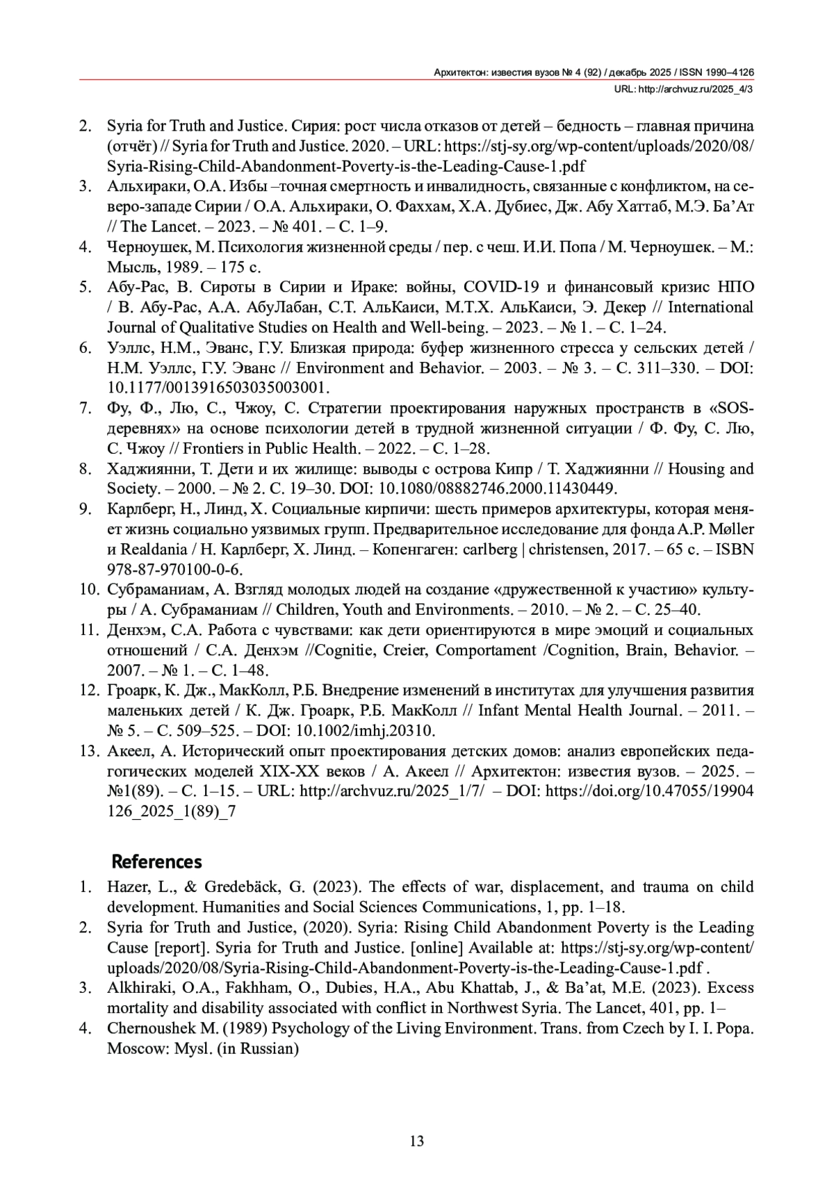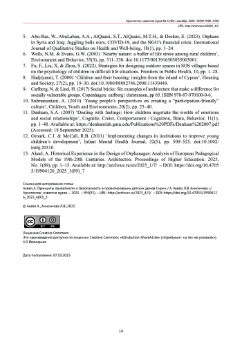 13. Акеел, А. Исторический опыт проектирования детских домов: анализ европейских педагогических моделей XIX-XX веков / А. Акеел // Архитектон: известия вузов. - 2025. - №1(89). - С. 1-15. - URL: http://archvuz.ru/2025_1/7/ -.