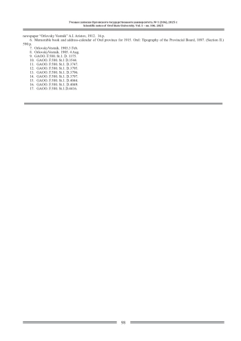 3. Гуларян А.Б. Дореволюционные самодеятельные общественные организации Орловской губернии. Словарь-справочник. Орел: Изд-во ОрелГАХ 2015. 498 с. EDN: UMTDHX