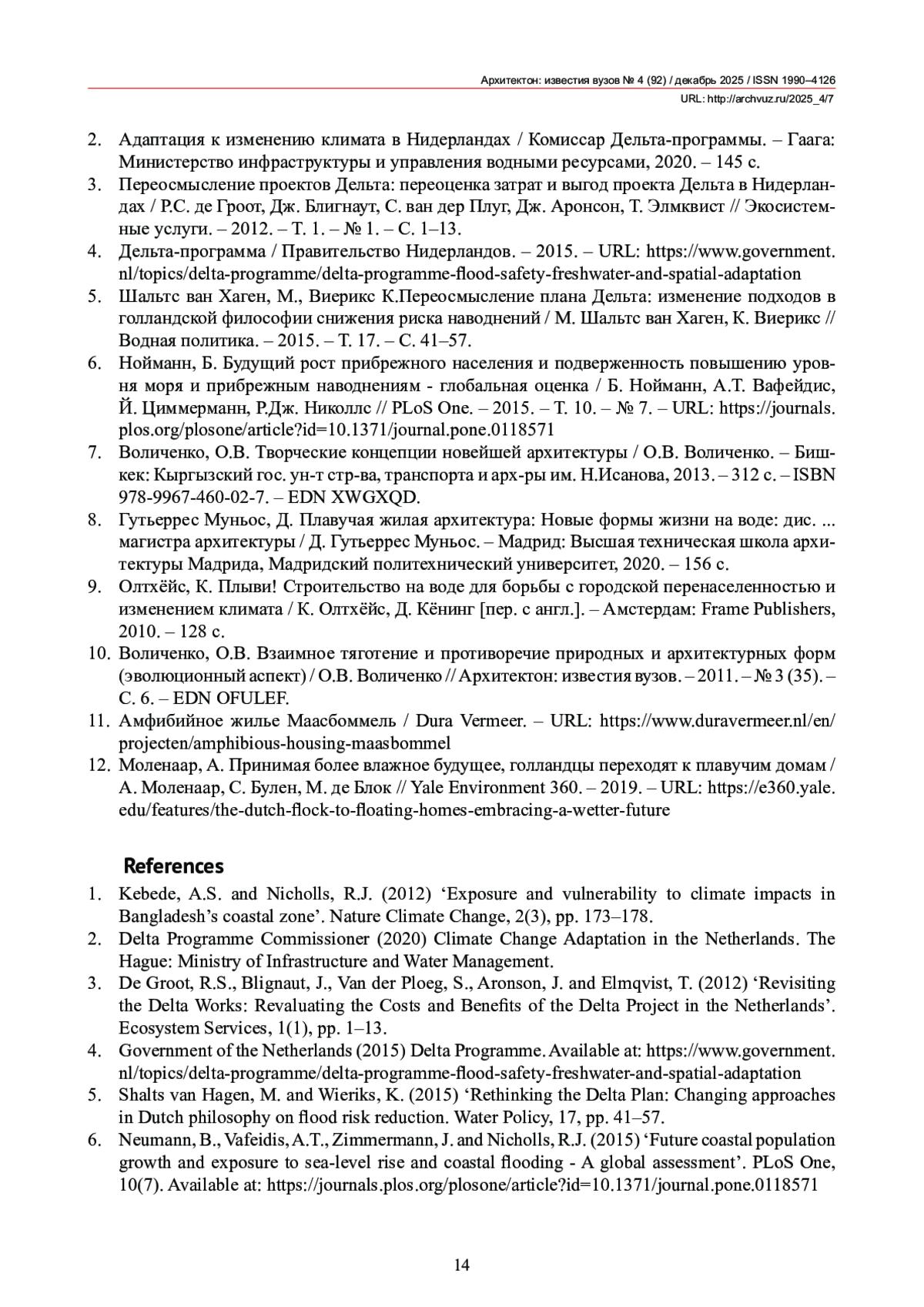 12. Моленаар, А. Принимая более влажное будущее, голландцы переходят к плавучим домам / А. Моленаар, С. Булен, М. де Блок // Yale Environment 360. - 2019. - URL: https://e360.yale.edu/features/the-dutch-flock-to-floating-homes-embracing-a-wetter-future.