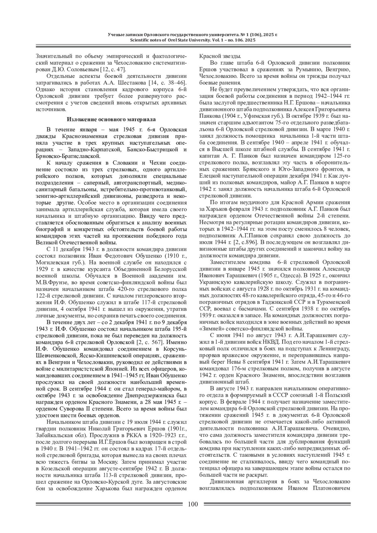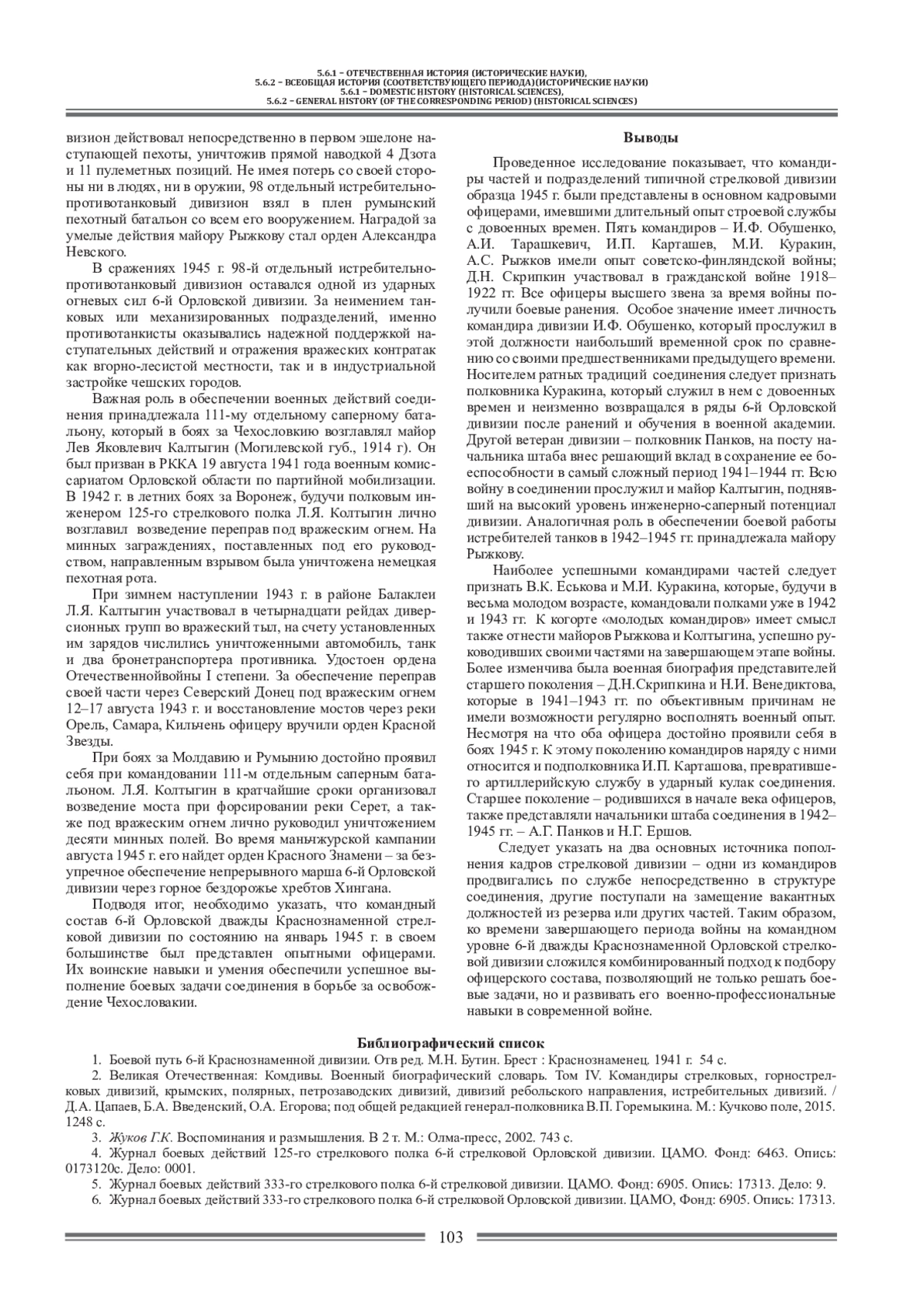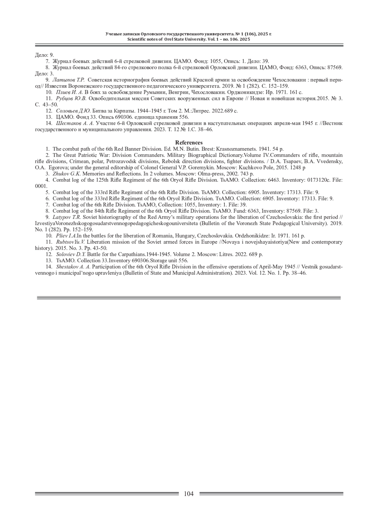 14. Шестаков А. А. Участие 6-й Орловской стрелковой дивизии в наступательных операциях апреля-мая 1945 г. // Вестник государственного и муниципального управления. 2023. Т. 12 № 1.С. 38-46. EDN: SRDVFG