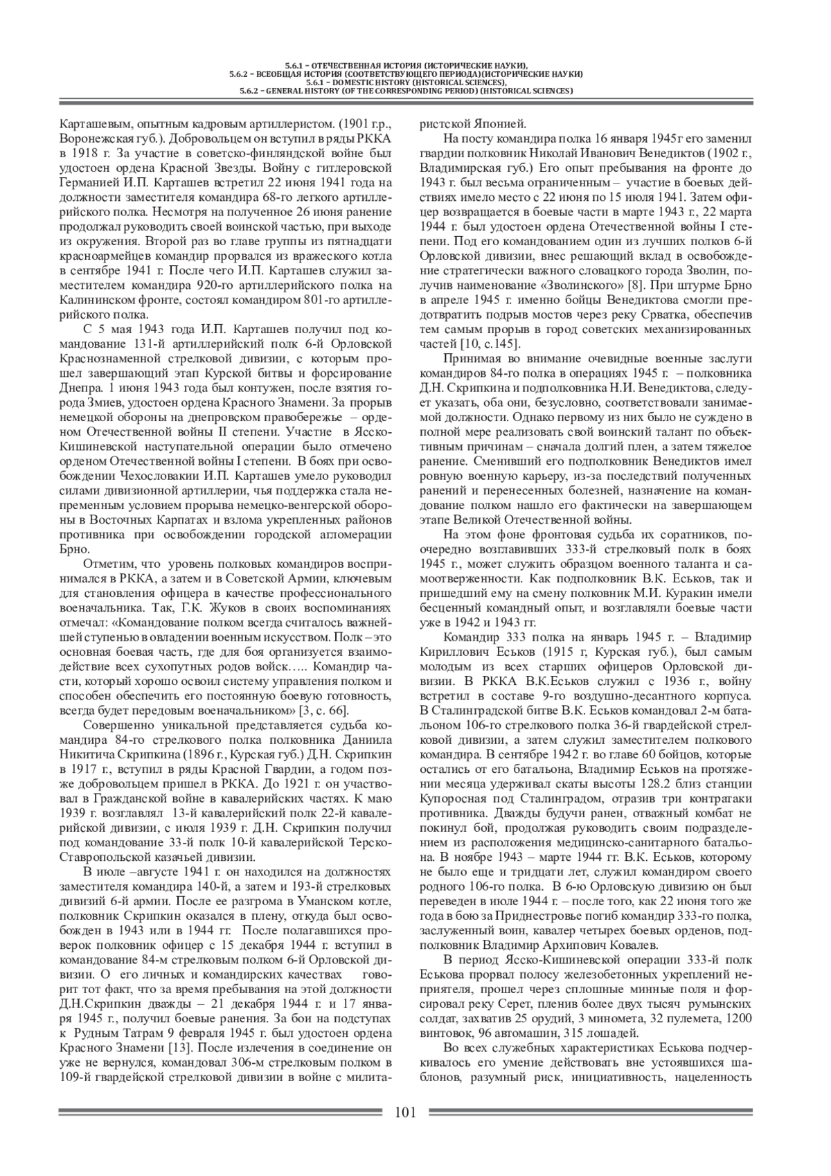 Одной из проблем исторических исследований завершающего периода Великой Отечественной войны остается недостаток исследований в области карьерного продвижения командного состава частей и соединений РККА. Не оспаривается, что профессиональный уровень и степень подготовки советских офицеров вносил решающую лепту в исход боевых действий весь военный период. Если ратному труду советских военачальников в отечественной науке всегда уделялось должное внимание, то вопросы определения компетенции командиров звена «полк-дивизия» крайне редко становились предметом комплексного историографического анализа. Однако именно оценка состояния военных навыков и умений командиров РККА позволяет наглядно установить взаимосвязь между успехами на поле боя и степенью боеспособности советского командования на тактическом уровне.