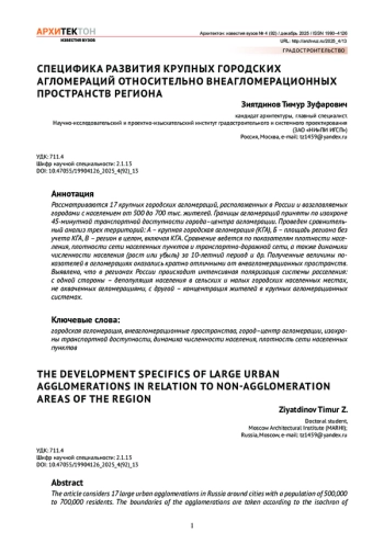 4. Зиятдинов, Т.З. Делимитация границ городской агломерации методом функциональны хареалов / Т.З. Зиятдинов // Архитектон: известия вузов. - 2022. - № 1(77). - URL: http://archvuz.ru/2022_1/9.