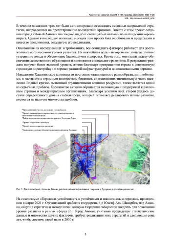 Устойчивое развитие учитывает социальные, экологические и экономические аспекты надлежащего использования имеющихся ресурсов для удовлетворения потребностей людей при сохранении прав будущих поколений [1–4]. Муниципалитет Большого Аммана, который несет ответственность за мониторинг, разработку и реализацию проекта устойчивого развития столицы, сотрудничает с Министерством планирования и другими стратегическими партнерами, чтобы определить короткосрочные и долгосрочные планы, способствующие устойчивому развитию будущих поколений (рис. 1).