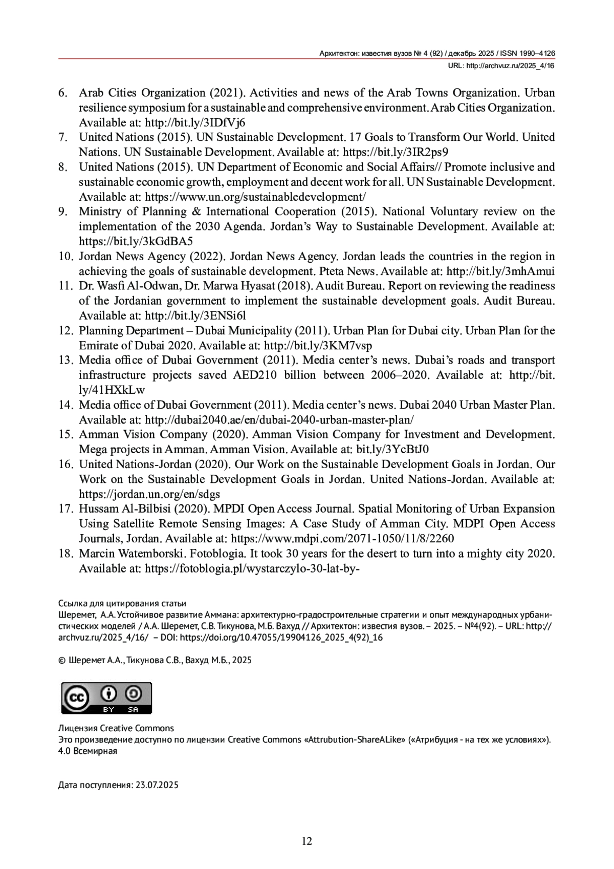 17. Hussam Al-Bilbisi. MPDI Open Access Journal. Spatial Monitoring of Urban Expansion Using Satellite Remote Sensing Images: A Case Study of Amman City. MDPI Open Access Journals, Jordan, 2020. - URL: https://www.mdpi.com/2071-1050/11/8/2260.
