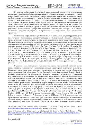 44. van Mulukom V. What do nonreligious nonbelievers believe in? Secular worldviews around the world / V. van Mulukom, H. Turpin, R. Haimila, B.G. Purzycki, T. Bendixen, E. Kundtová Klocová, D. Řezníček, T.J. Coleman, K. Sevinç, E. Maraldi, U. Schjoedt, B.T.Rutjens, M. Farias // Psychology of Religion and Spirituality. - 2022. - Т. 15(1). - С. 143-156. - 10.1037/rel0000480 (дата обращения: 12.03.2025). DOI: 10.1037/rel0000480(