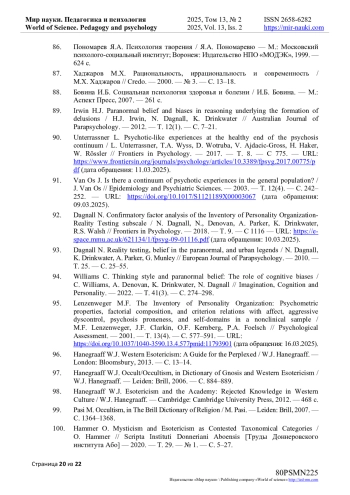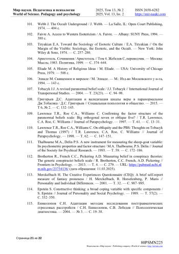 18. Lange R. Top-down purification of Tobacyk’s revised paranormal belief scale / R. Lange, H.J. Irwin, J. Houran // Personality and Individual Di erences. - 2000. - Т. 29. - С. 131-156.