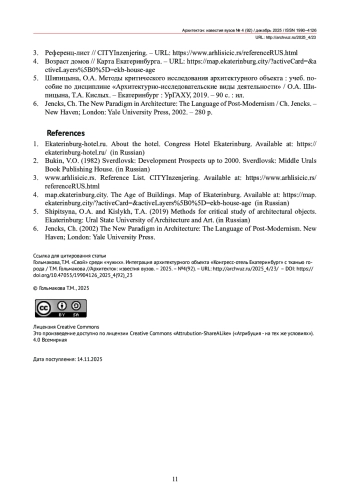 5. Шипицына, О.А. Методы критического исследования архитектурного объекта: учеб. пособие по дисциплине “Архитектурно-исследовательские виды деятельности” / О.А. Шипицына, Т.А. Кислых. - Екатеринбург: УрГАХУ, 2019. - 90 с.