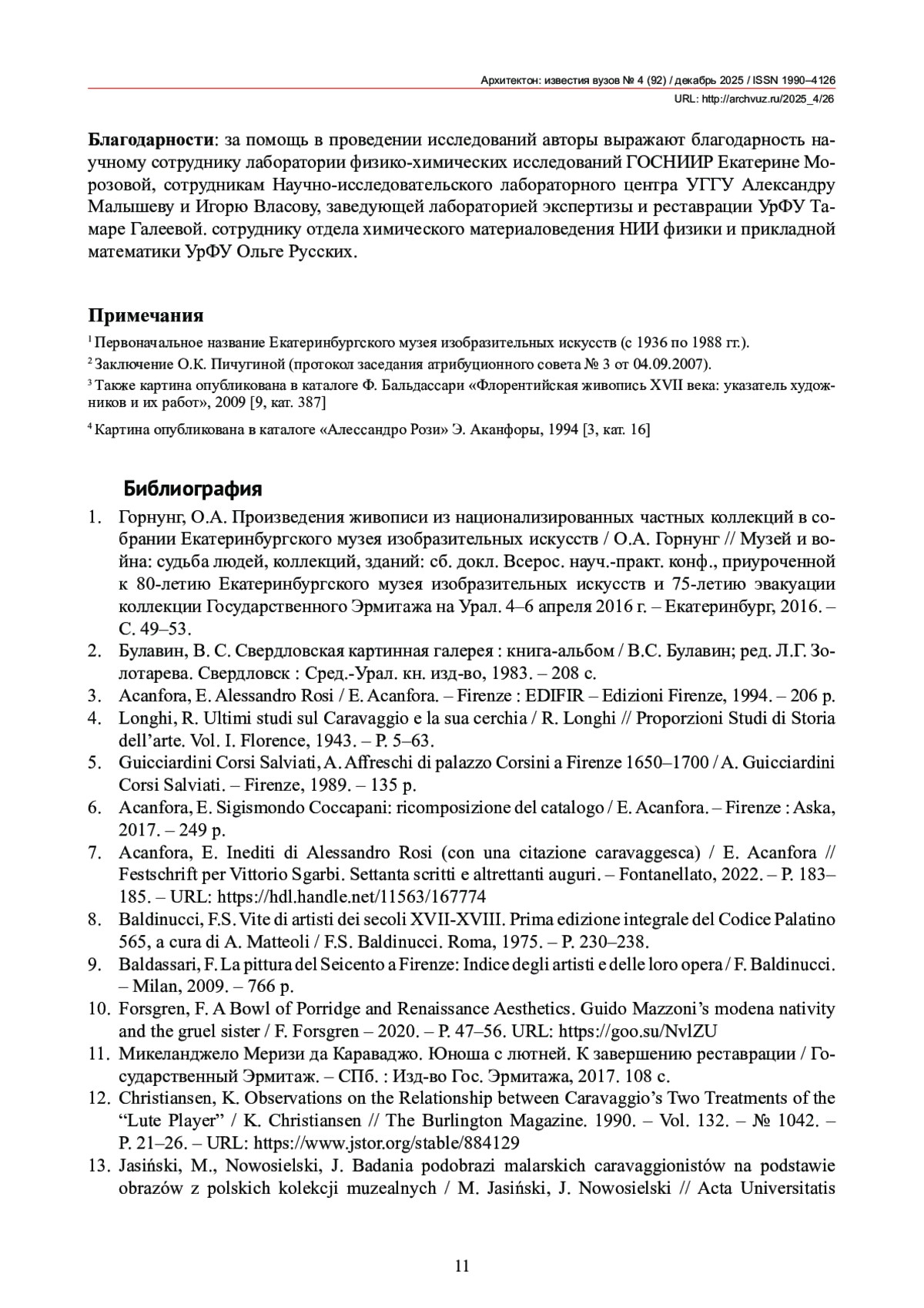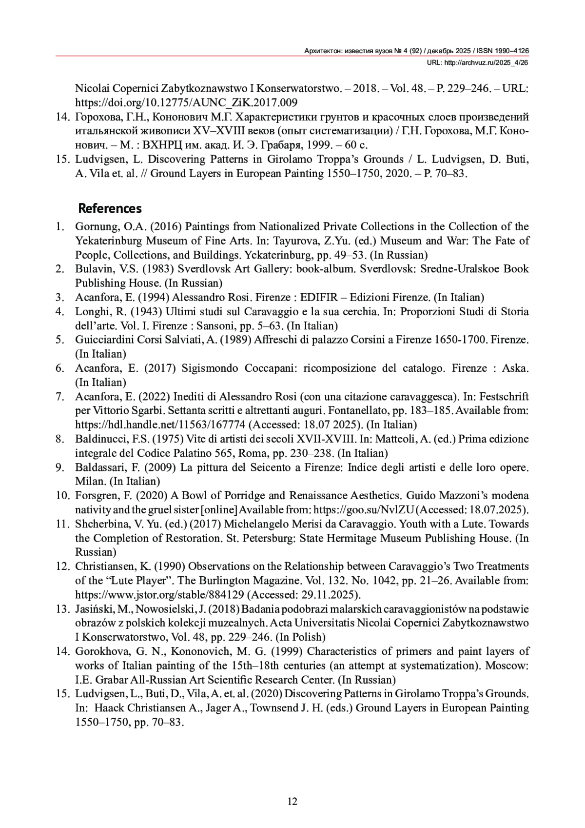 12. Christiansen, K. Observations on the Relationship between Caravaggio’s Two Treatments of the “Lute Player” / K. Christiansen // The Burlington Magazine. 1990. - Vol. 132. - № 1042. - P. 21-26. - URL: https://www.jstor.org/stable/884129.