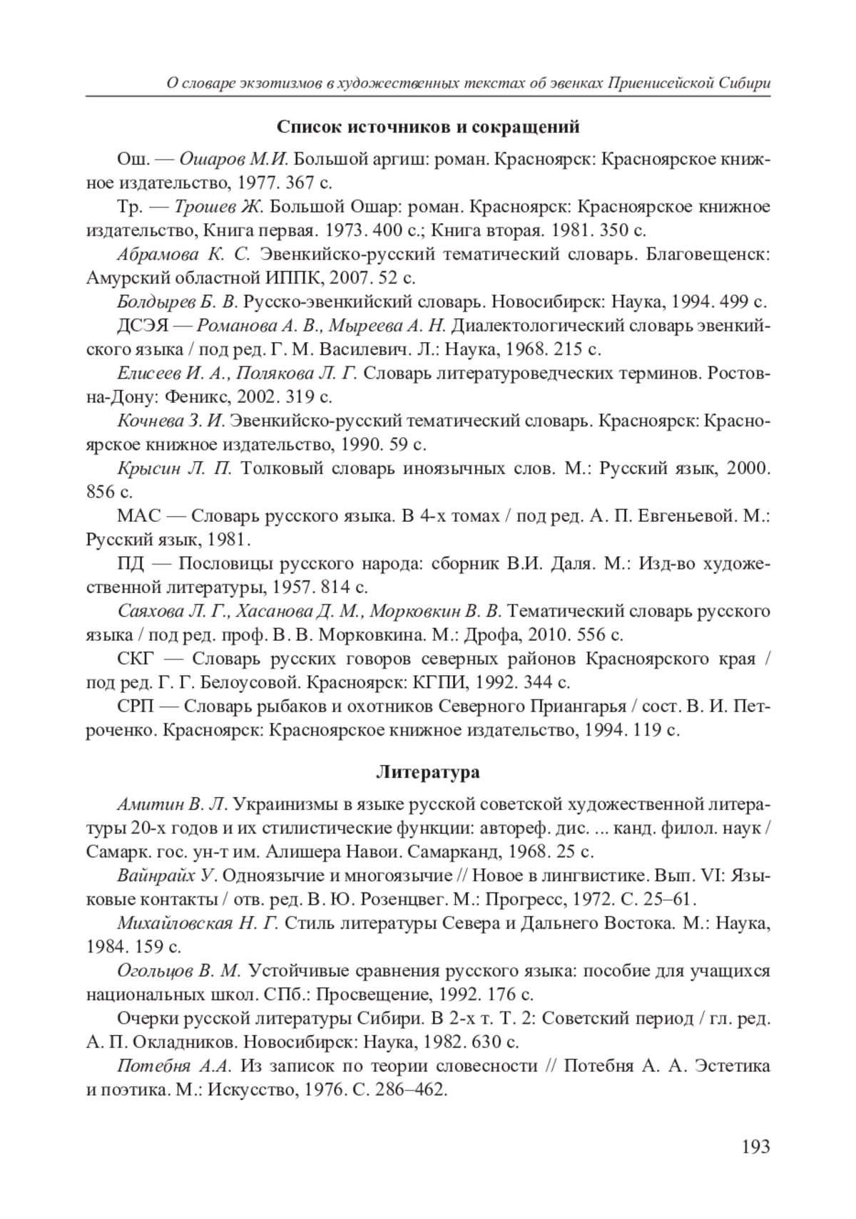 1. Ош. - Ошаров М.И. Большой аргиш: роман. Красноярск: Красноярское книжное издательство, 1977. 367 с.