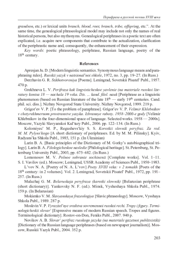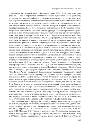 3. Грехнева Л. В. Перифраза как лингвистическое явление (на материале русской литературы конца 18 - начала 19 века: дис. … канд. филол. наук / Нижегородский гос. ун-т. Нижний Новгород, 1999. 219 с. EDN: YZNALV