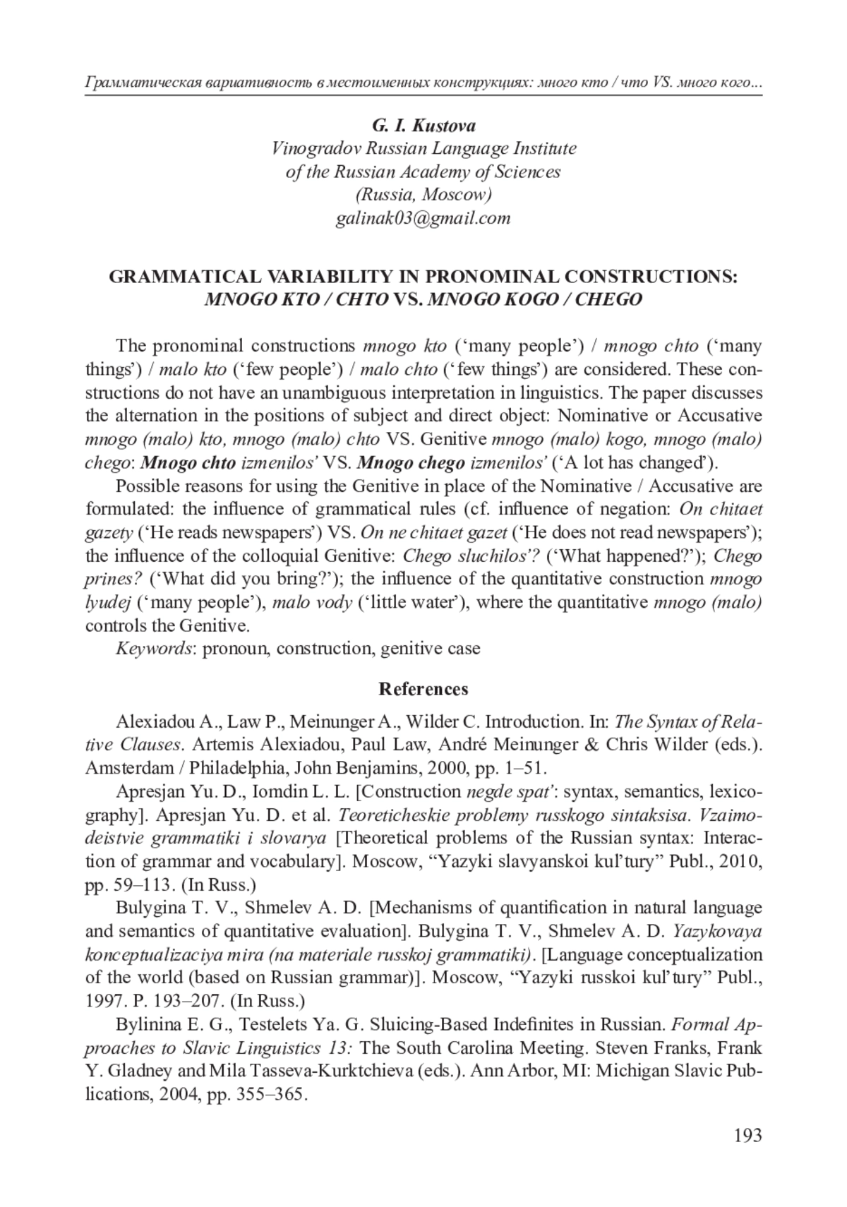 9. Никунласси А. Приместоименно-относительные конструкции в современном русском языке. Helsinki, 2008.