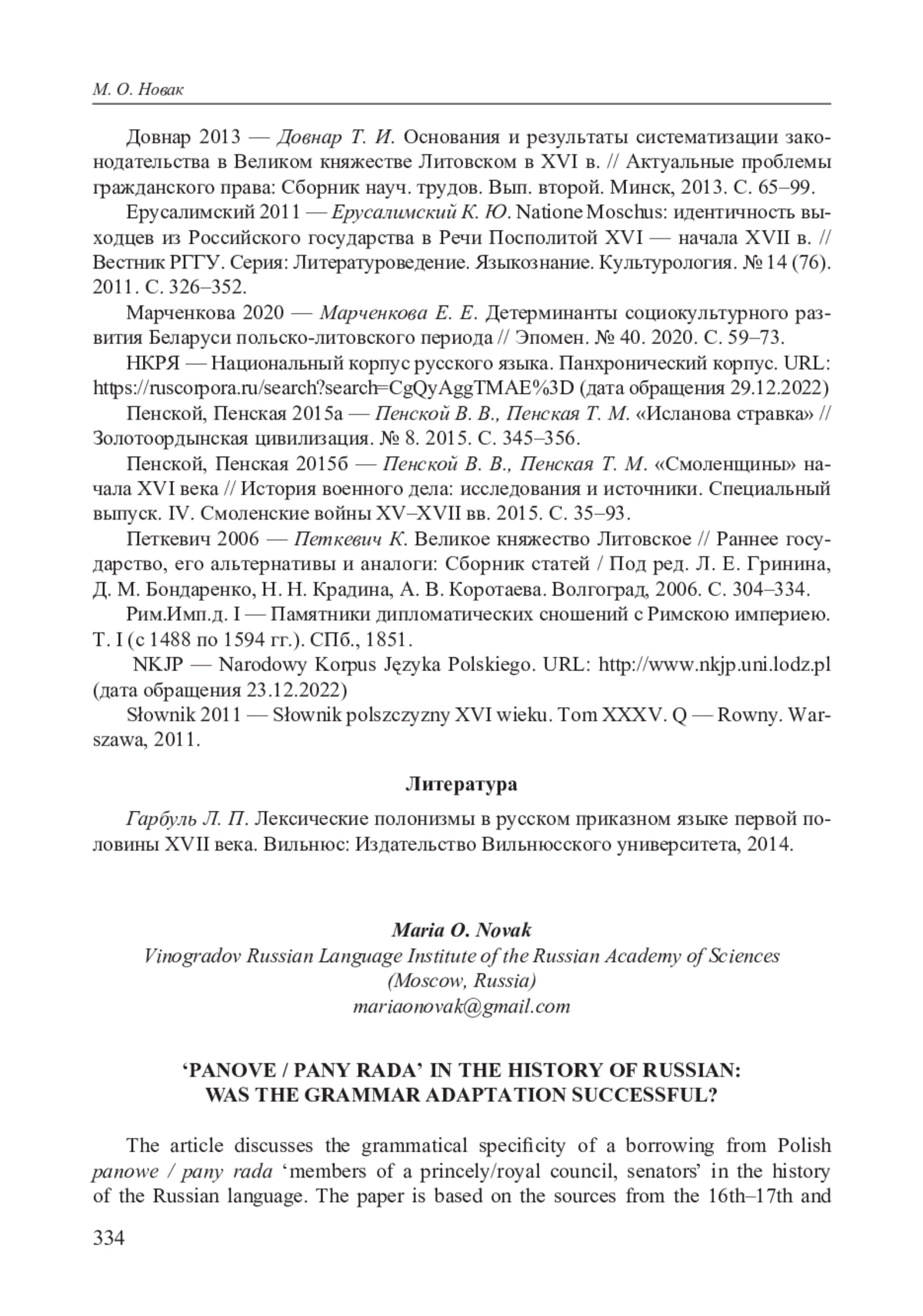 17. Гарбуль Л. П. Лексические полонизмы в русском приказном языке первой половины ХVII века. Вильнюс: Издательство Вильнюсского университета, 2014.