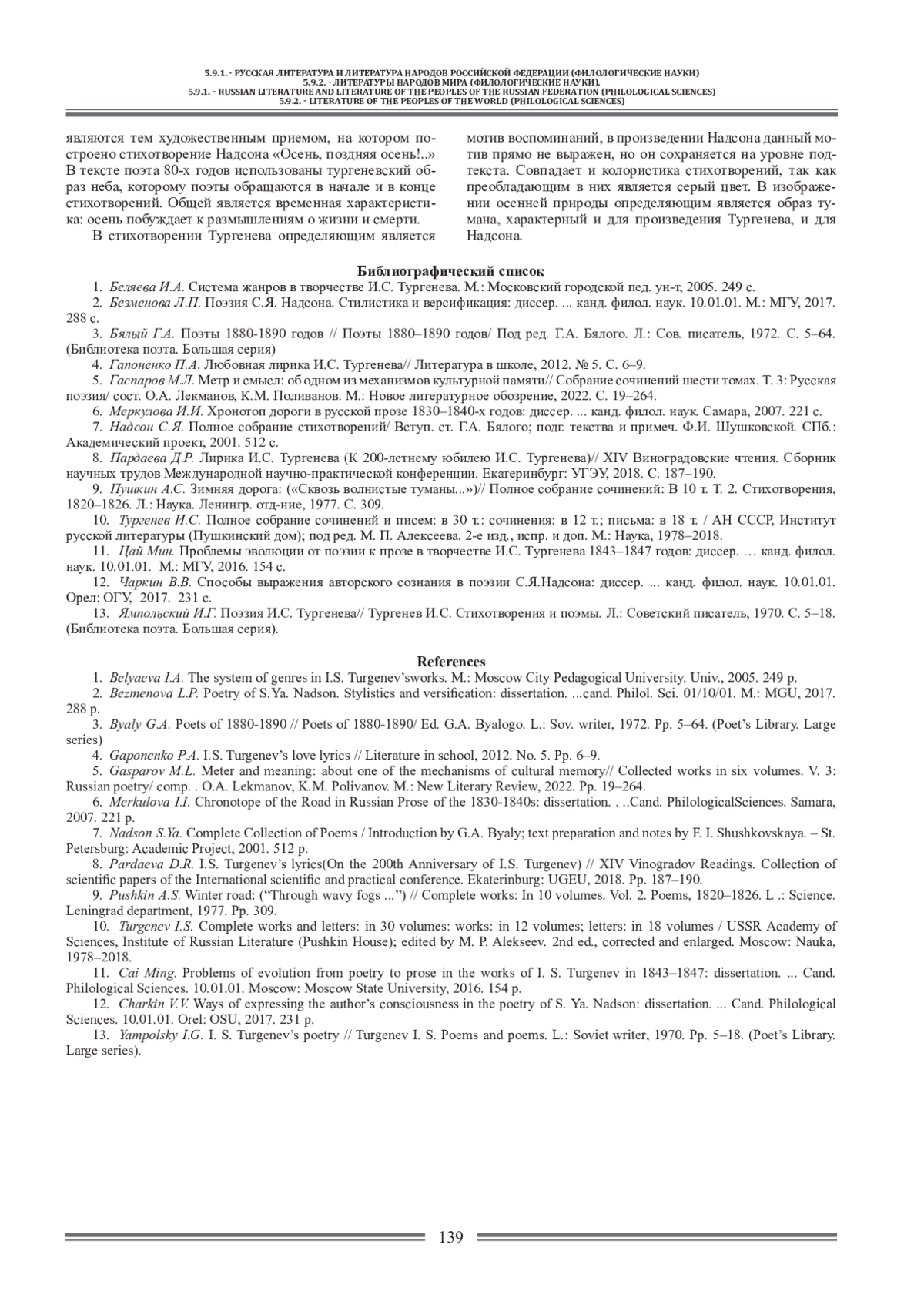 2. Безменова Л.П. Поэзия С.Я. Надсона. Стилистика и версификация: диссер.. канд. филол. наук. 10.01.01. М.: МГУ, 2017. 288 с.