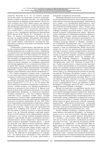 В статье рассмотрено субъективное художественное пространство рассказов Е. И. Замятина «Мамай» и «Пещера» на концептуальном и перцептуальном уровнях. В первом случае внимание уделяется концептуальному пространству Петербурга в контексте образа города в литературе начала XX века с учетом характерных особенностей поэтики писателя. Во втором художественная действительность отображена в соответствии с представлениями самих героев произведения о нем. Тем самым при помощи сопоставительного анализа обнаруживается специфическая пространственная оппозиция «Петербург» - «Петроград», которая является одной из ключевых при изучении творчества Е. И. Замятина.