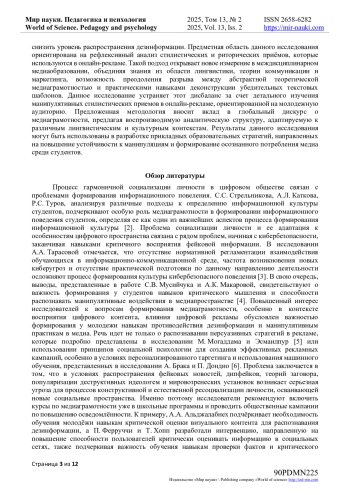 4. Мусийчук, С.В. Медиаграмотность в информационную эпоху через призму понятий “фейк” и “фейк ньюз” / С.В. Мусийчук, А.К. Макарова [Электронный ресурс] // Мир науки. Педагогика и психология. 2024. Т 12. № 6. URL: https://mir-nauki.com/PDF/98PDMN624.pdf (дата обращения: 10.04.2025).