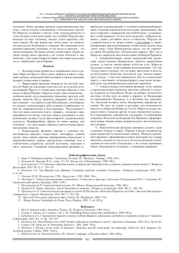 В статье рассматриваются функции повествователя в «парижском тексте» романа М. Пруста «Под сенью девушек в цвету». Нарративная, режиссерская, свидетельская (эмотивная), коммуникативная, идеологическая функции тесно взаимосвязаны. Функции повествователя сопряжены с процессом ценностного самоопределения в городской среде, с поисками универсальных источников смысла, символических сопоставлений и эстетических знаков-выразителей пространства. Власти времени подвластно все, и оттого смена «парижских картин» и сцен диалогического характера сопровождается философским осмыслением.