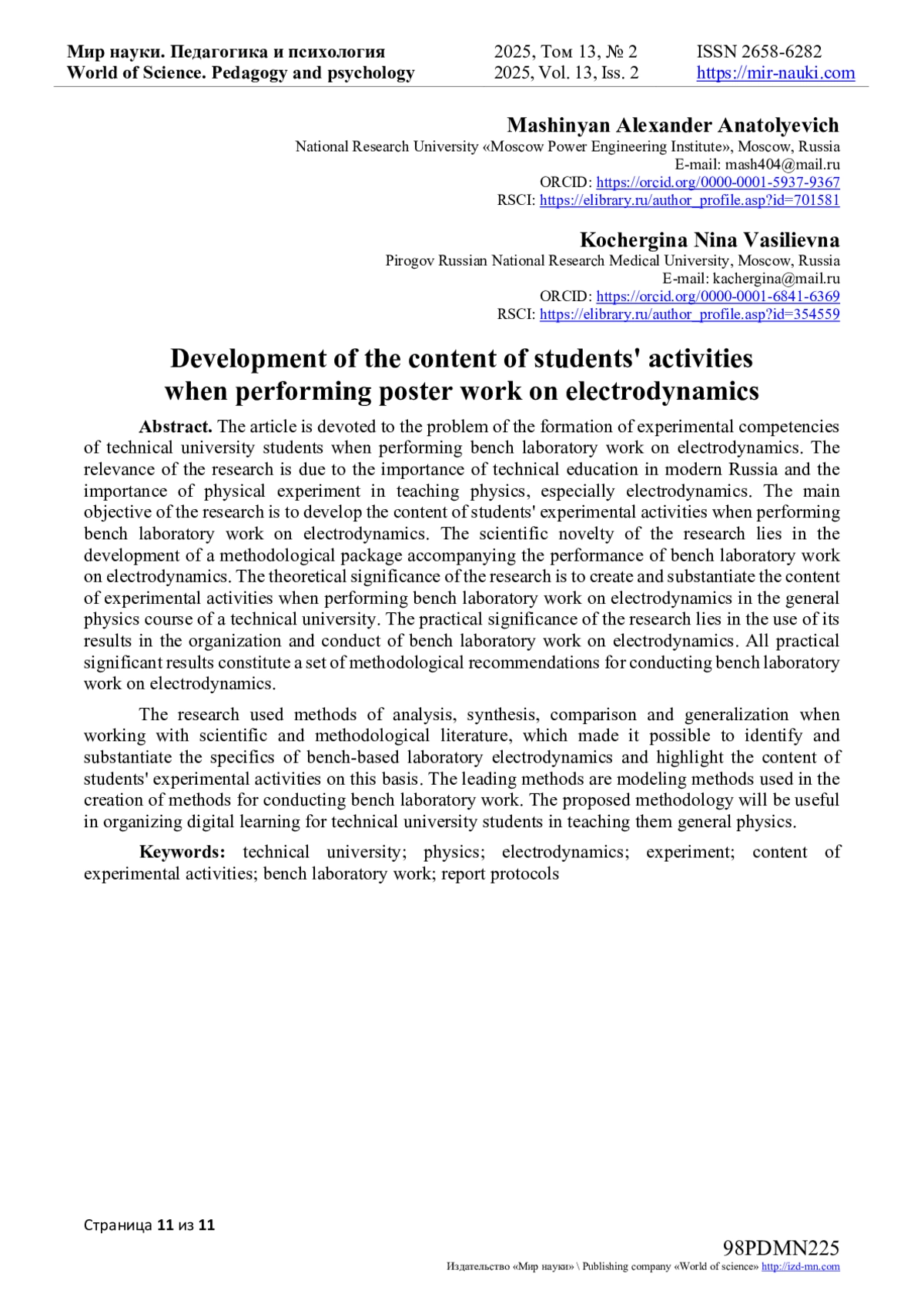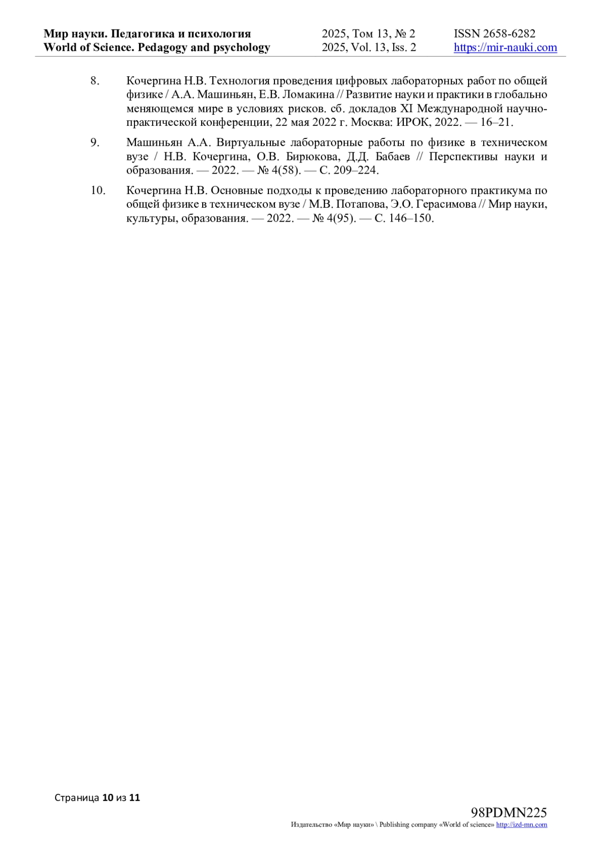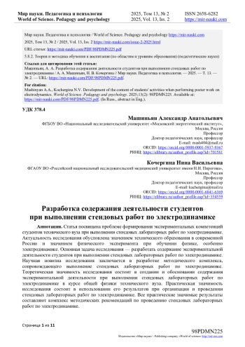 10. Кочергина Н.В. Основные подходы к проведению лабораторного практикума по общей физике в техническом вузе / М.В. Потапова, Э.О. Герасимова // Мир науки, культуры, образования. - 2022. - № 4(95). - С. 146-150. EDN: DIHVQS