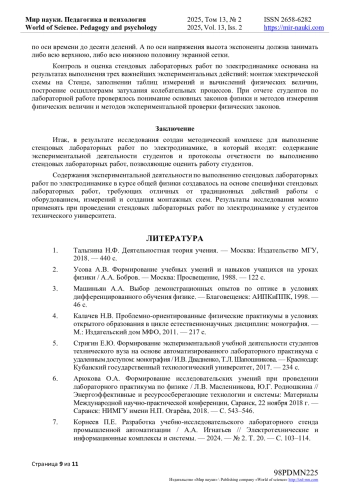6. Арюкова О.А. Формирование исследовательских умений при проведении лабораторного практикума по физике / Л.В. Масленникова, Ю.Г. Родиошкина // Энергоэффективные и ресурсосберегающие технологии и системы: Материалы Международной научно-практической конференции, Саранск, 22 ноября 2018 г. - Саранск: НИМГУ имени Н.П. Огарёва, 2018. - С. 543-546. EDN: VRSKUS