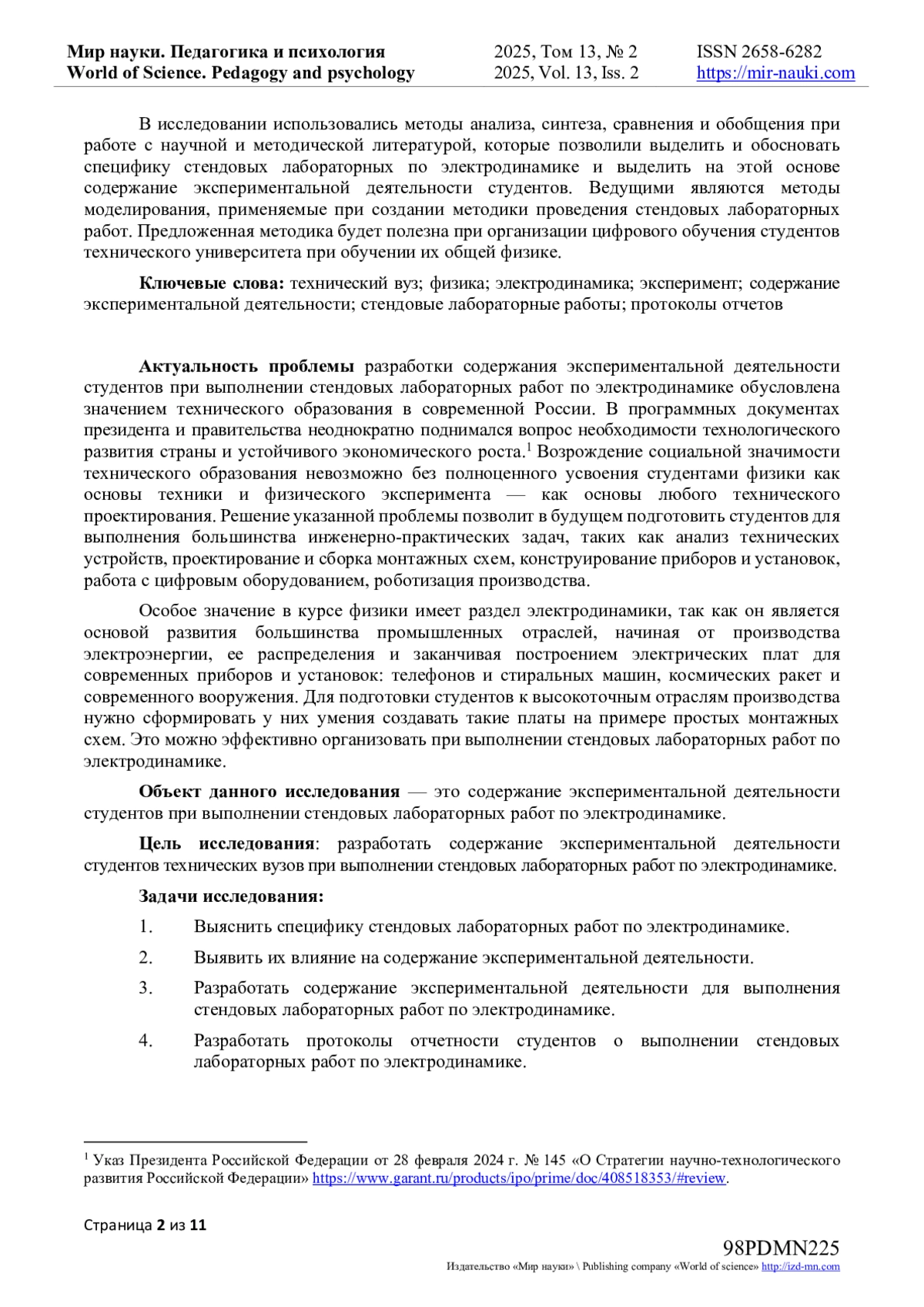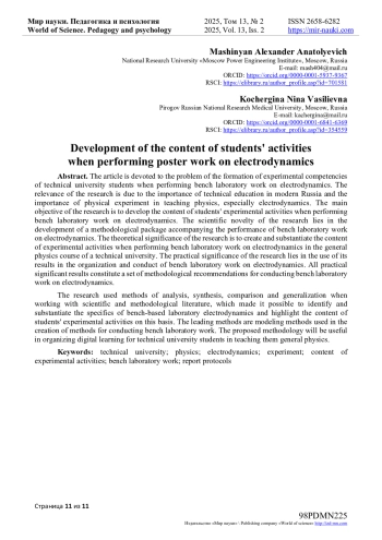 Актуальность проблемы разработки содержания экспериментальной деятельности студентов при выполнении стендовых лабораторных работ по электродинамике обусловлена значением технического образования в современной России.