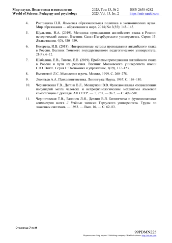 5. Шульгина, Н.А. (2019). Методика преподавания английского языка в России: исторический аспект. Вестник Санкт-Петербургского университета. Серия 13. Языкознание, 4(3), 480-489.