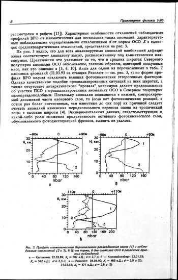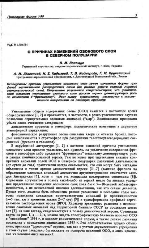 Исследованы причины уменьшения озонового слоя путем изменения формы профилей вертикального распределения озона (по данным девяти станций мировой озонометрической сети). Полученные результаты свидетельствуют, что динамический механизм уменьшения озонового слоя должен играть доминирующую роль по отношению к “фреоновому”. Этот вывод существенно расходится с устоявшимися воззрениями на озоновую проблему