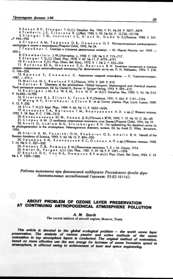 Работа посвящена глобальной экологической проблеме — сохранению озонового слоя Земли. Проведен анализ различных пассивных и активных методов восстановления озонового слоя в верхних слоях атмосферы. На базе достижений лазерной и космической техники предлагается оригинальный метод восстановления, основанный на более эффективном использовании солнечной энергии для увеличения скорости образования озона в стратосфере