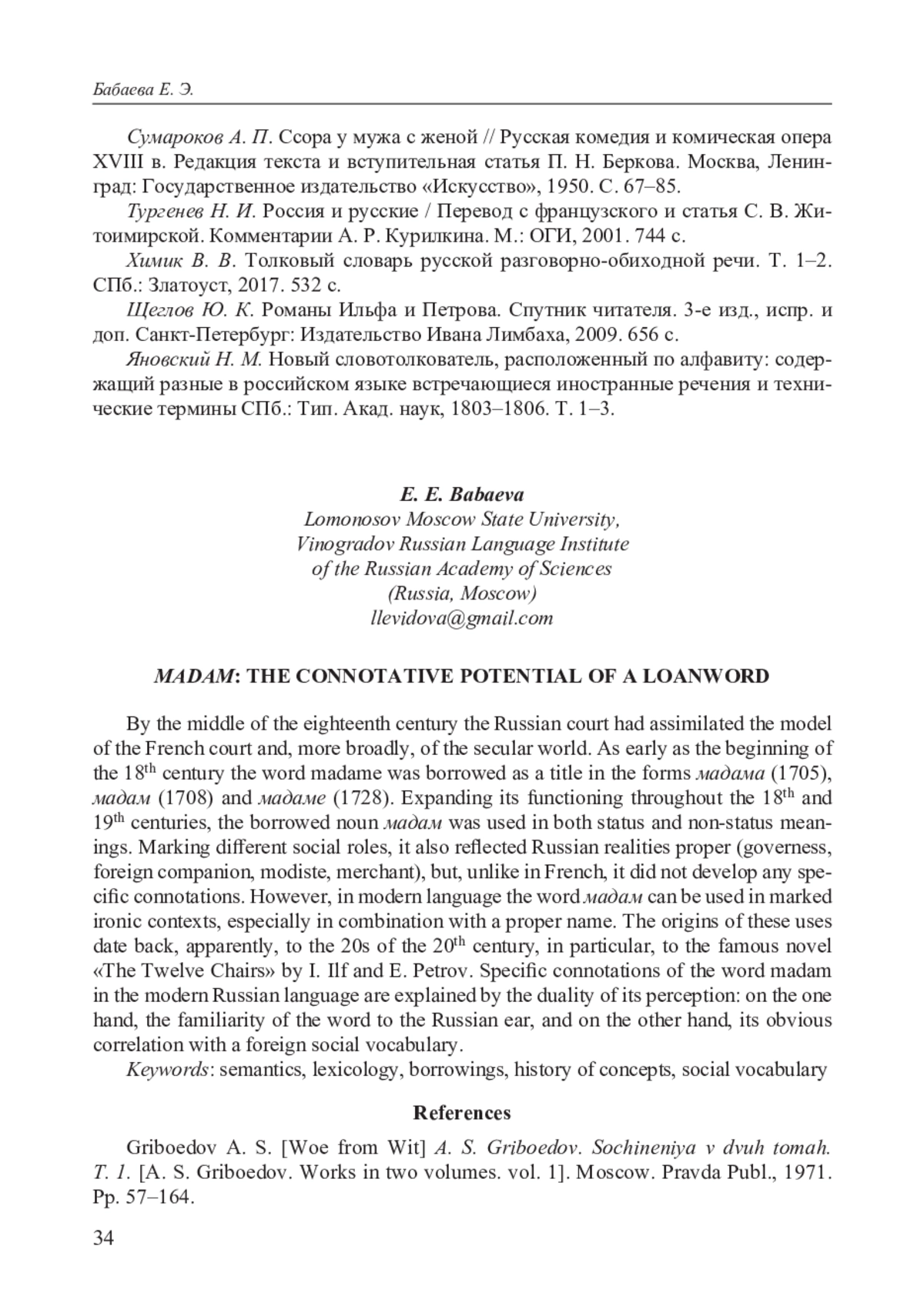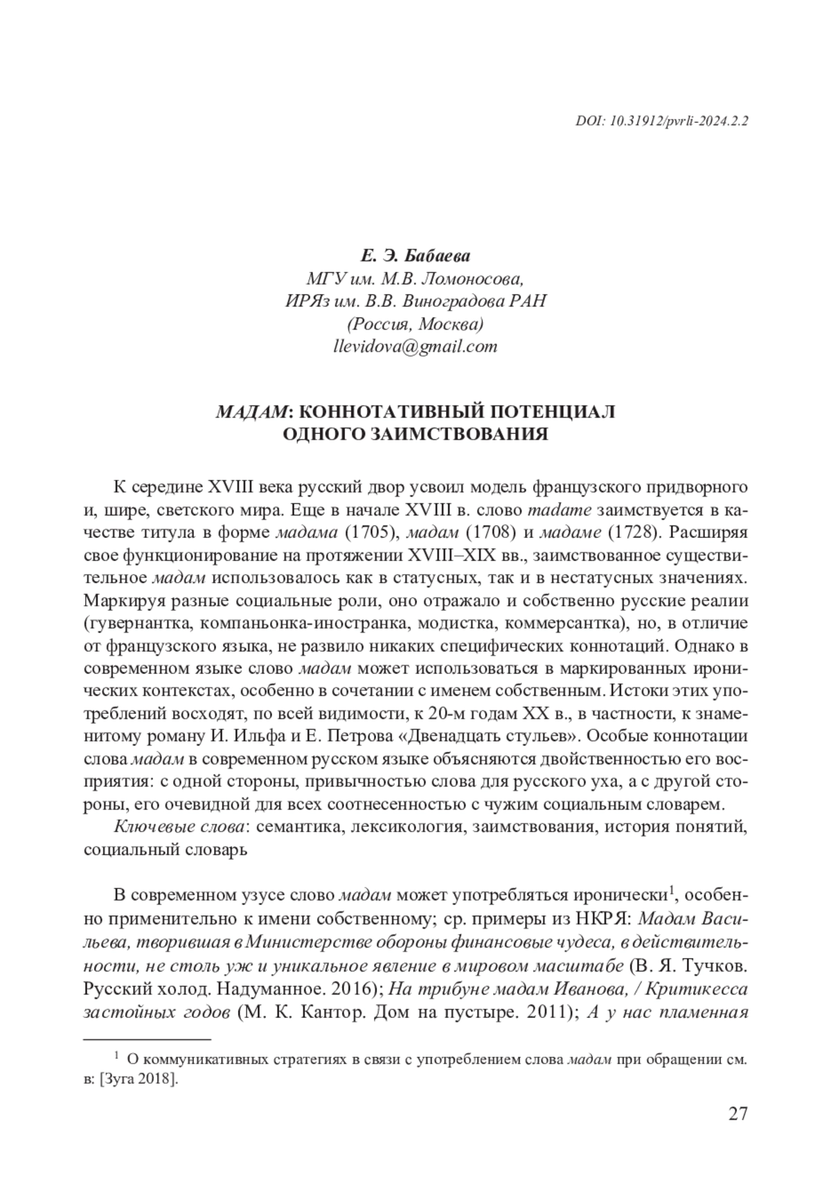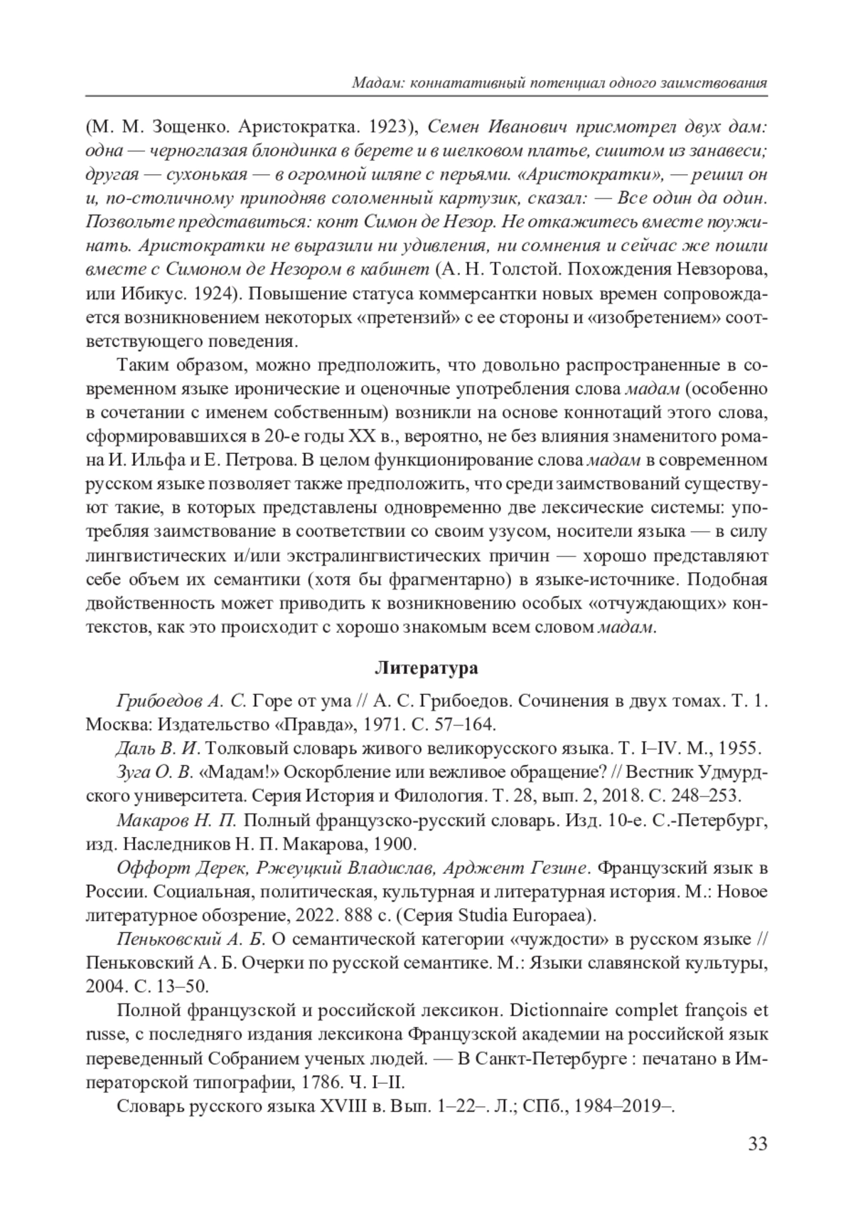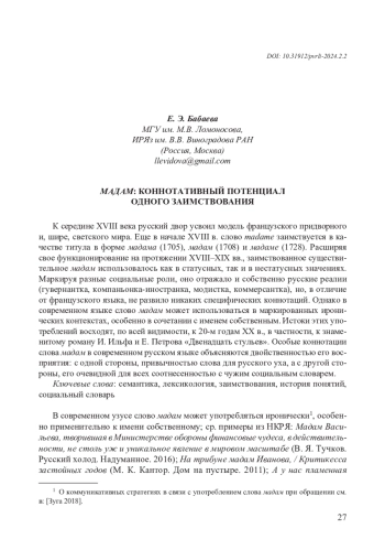3. Зуга О. В. “Мадам!” Оскорбление или вежливое обращение? // Вестник Удмурдского университета. Серия История и Филология. Т. 28, вып. 2, 2018. С. 248-253. EDN: SJHLMH