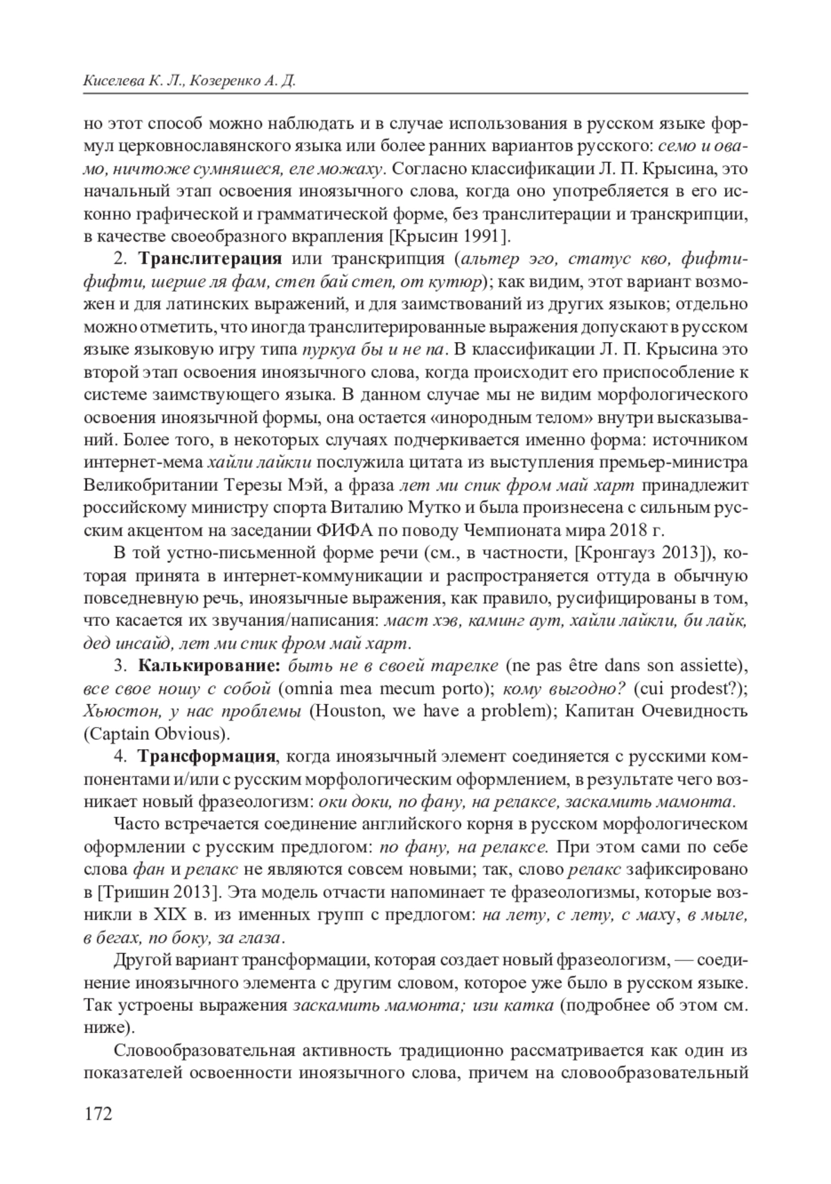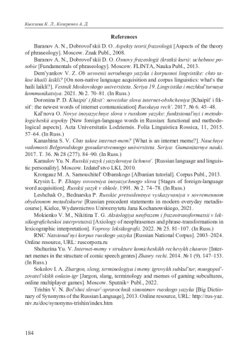 5. Кальнова О. Новые иноязычные слова в русском языке: функциональный и методологический аспекты. Acta Universitatis Lodziensis. Folia Linguistica Rossica, 11, 2015. С. 57-64.