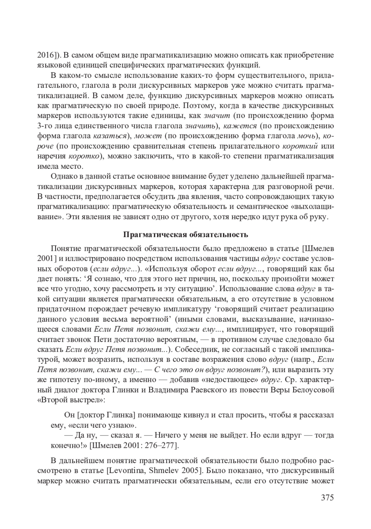 14. Шмелев А. Д. Некоторые тенденции семантического развития русских дискурсивных слов (на всякий случай, если что, вдруг) // Русский язык: пересекая границы / Отв. ред. М. Гиро-Вебер, И. Б. Шатуновский. Дубна: Международный университет природы, общества и человека “Дубна”, 2001. С. 266-279.