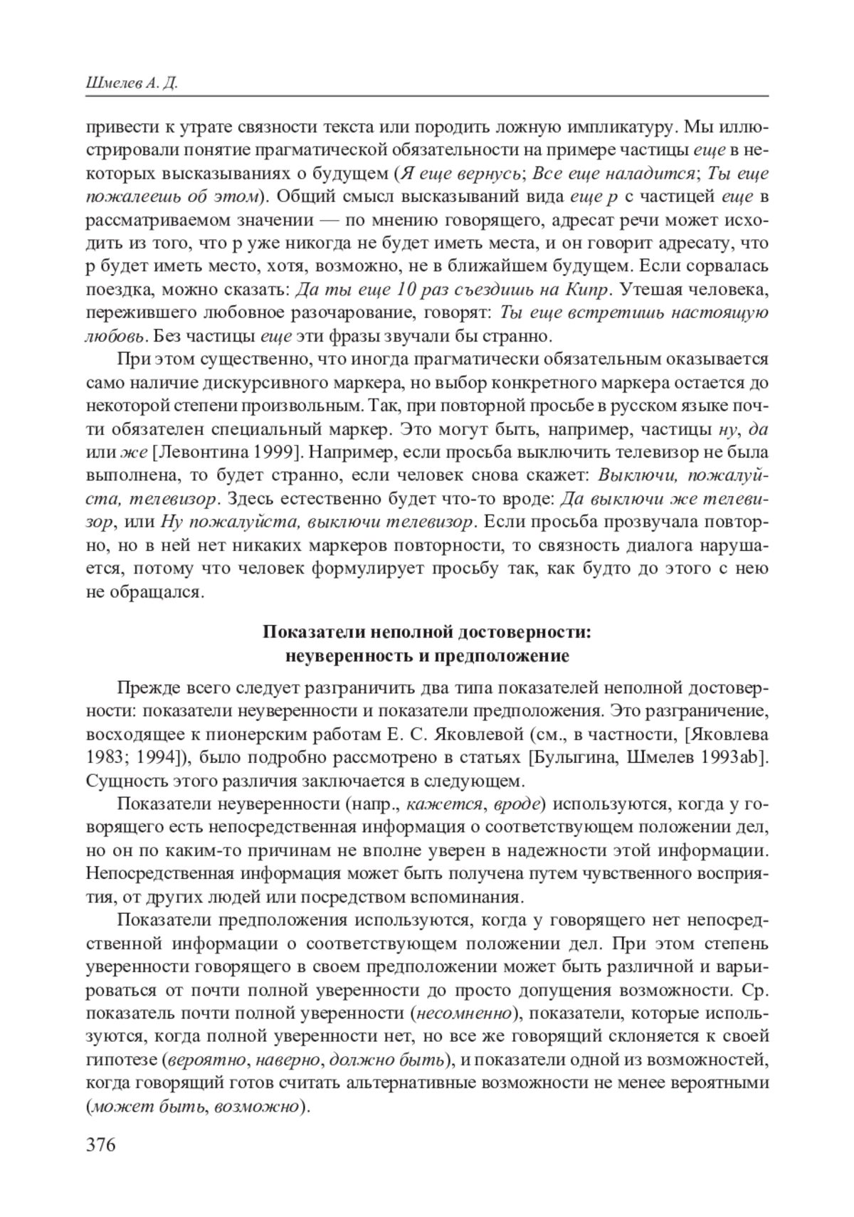21. Levontina I., Shmelev A. The particles one cannot do without // East-West Encounter: Second International Conference on Meaning ↔ Text Theory / ed. by Ju. D. Apresjan and L. L. Iomdin. Moscow, Slavic Culture Languages Publishing House, 2005. P. 259-268.