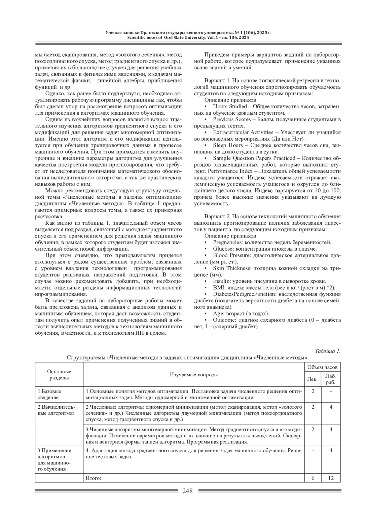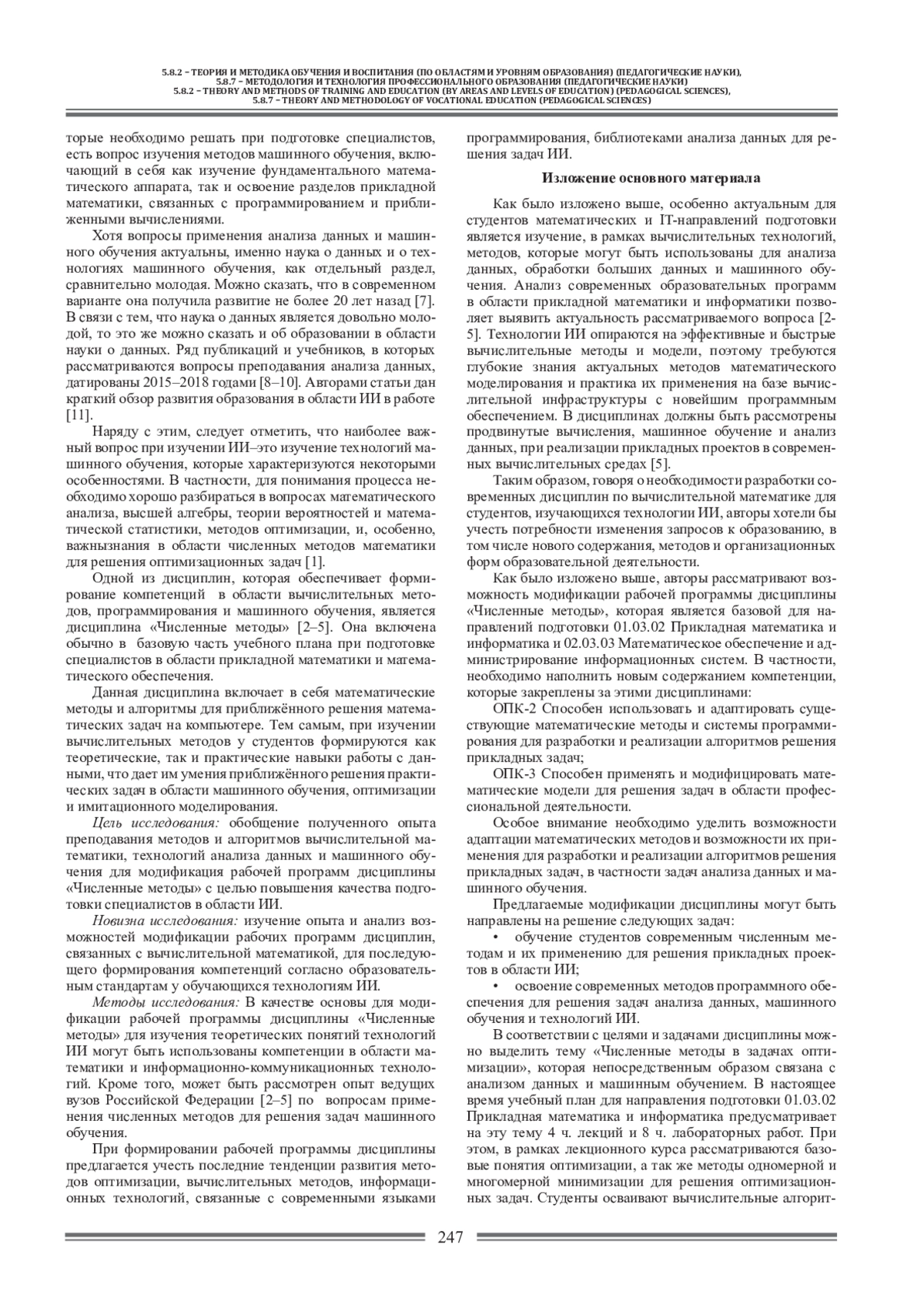 Рассматриваются вопросы обучения студентов современным численным методам как базы для более качественного освоения технологий искусственного интеллекта. В частности, затрагиваются вопросы теоретической и практической подготовки обучающихся для освоения методов анализа данных и машинного обучения. В статье обобщается опыт работы авторов по преподаванию отдельных тем дисциплины «Численные методы», касающихся численного решения оптимизационных задач, которые непосредственно связанны с машинным обучением. Полученные при изучении указанных тем компетенции позволят студентам более осознанно изучать технологии машинного обучения и использовать для выполнения прикладных проектов в области искусственного интеллекта. Предлагаются рекомендации по модификации рабочей программы дисциплины «Численные методы» для совершенствования образовательного процесса.