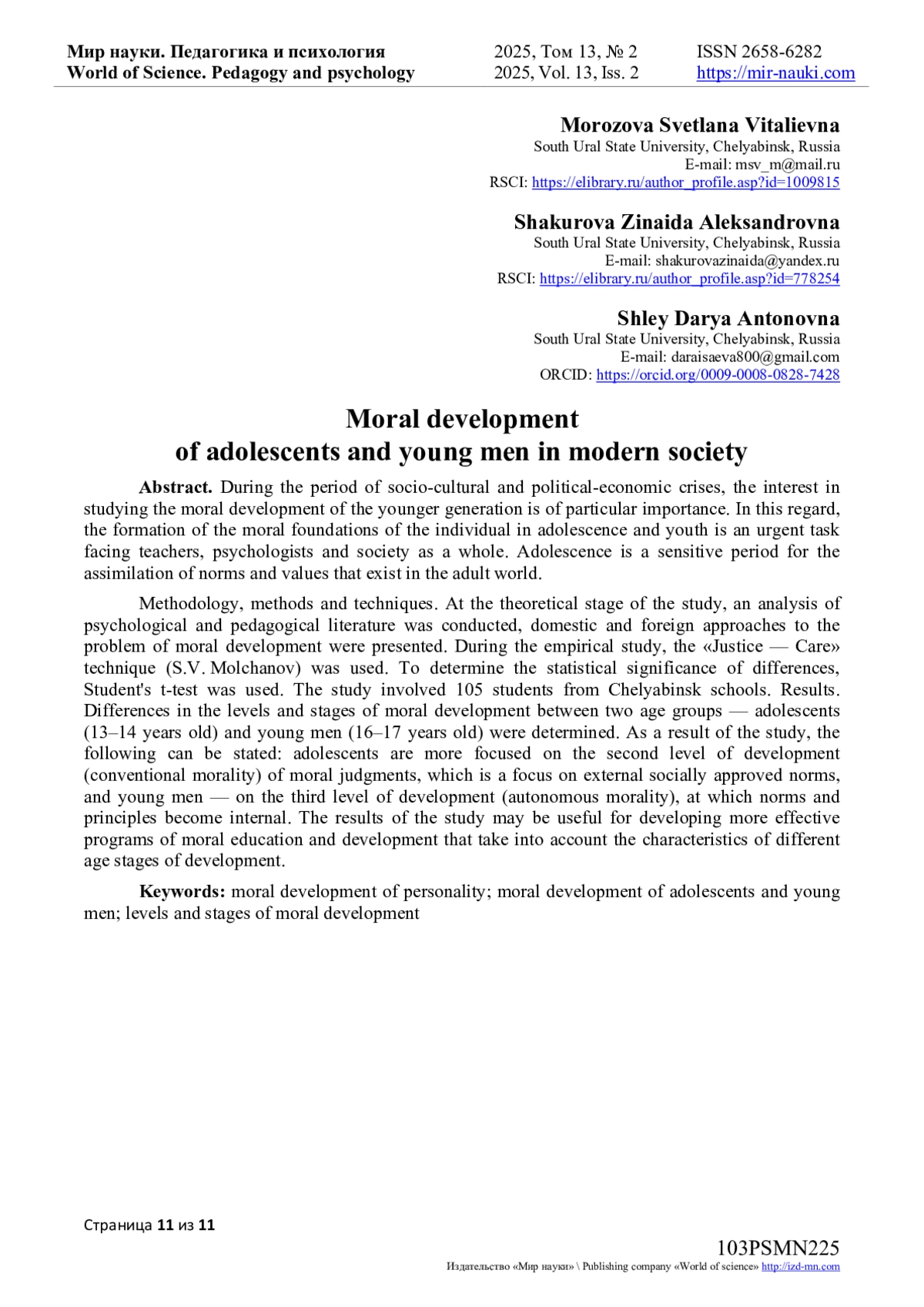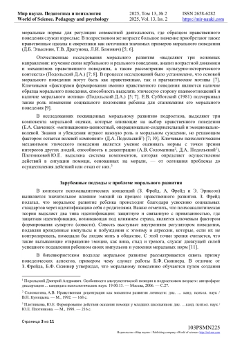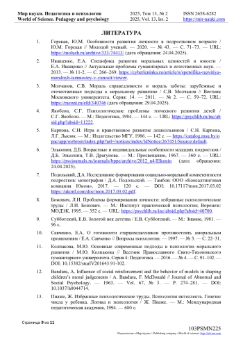 3. Молчанов, С.В. Мораль справедливости и мораль заботы: зарубежные и отечественные подходы к моральному развитию / С.В. Молчанов // Вестник Московского университета. Серия: 14. - 2011. - № 2. - С. 59-72. URL: https://rucont.ru/efd/340746 (дата обращения: 29.04.2025).