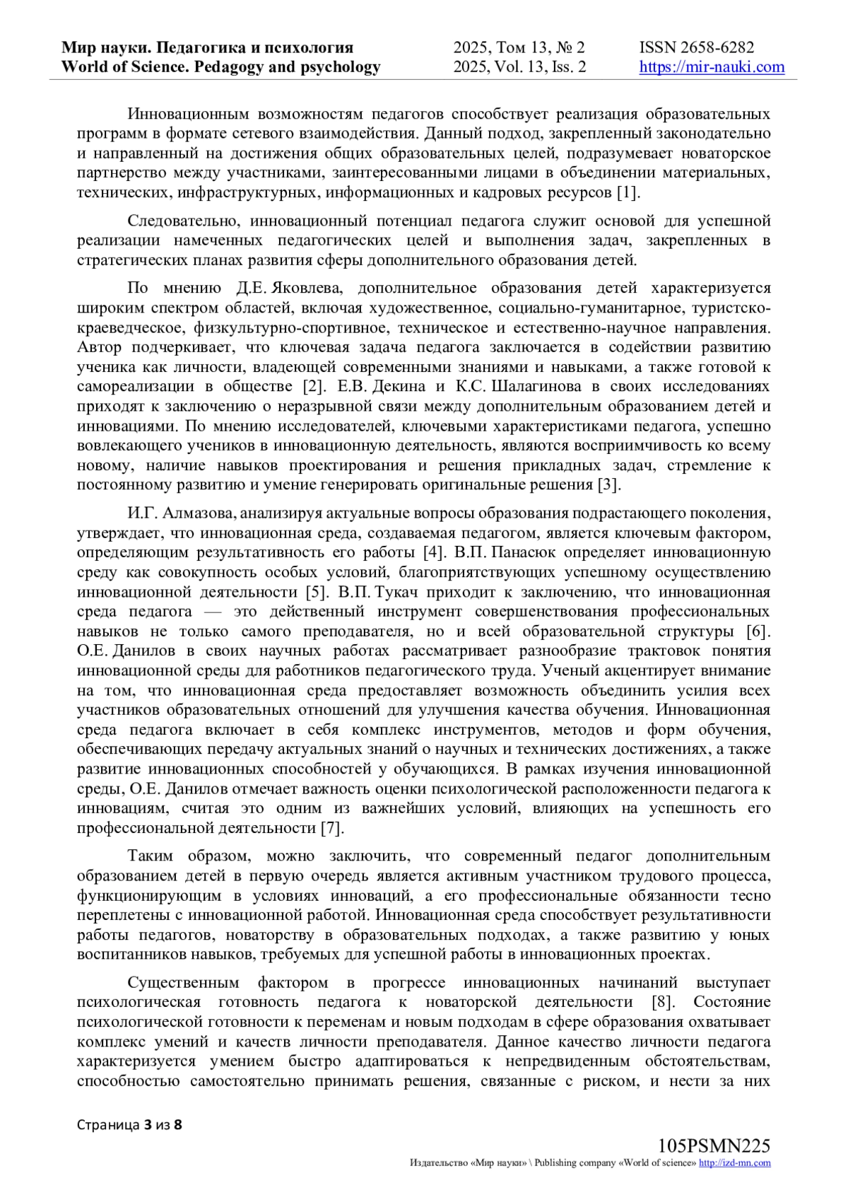 7. Данилов, О.Е. Инновационная образовательная среда педагогического ВУЗа / О.Е. Данилов // Современные вопросы устойчивого развития общества в эпоху трансформационных процессов: сборник материалов IV Международной научно-практической конференции, Москва, 12 декабря 2022 года. - Москва: Алеф, 2022. - С. 21-26. EDN: ICATPE