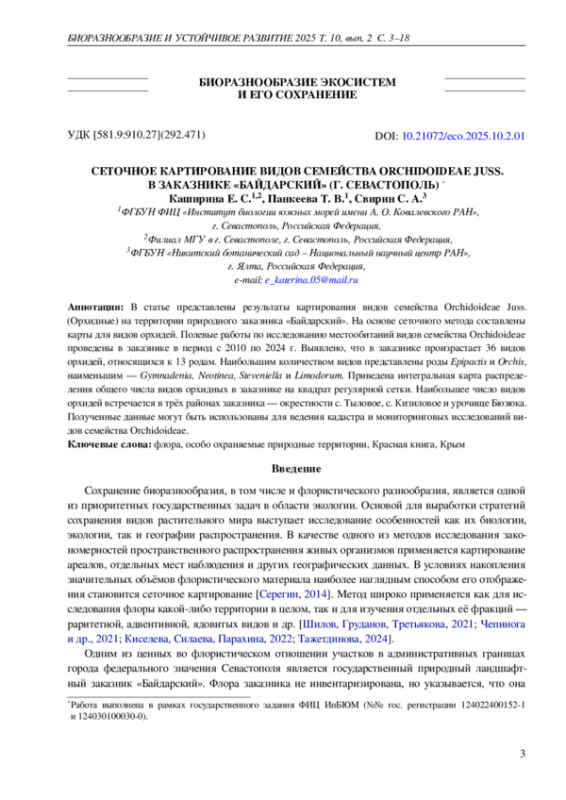 6. Позаченюк Е. А., Панкеева А. Ю., Панкеева Т. В. Современные ландшафты природного заказника “Байдарский” // Ученые записки Крымского федерального университета им. В. И. Вернадского. География. Геология. - 2020. - Т. 6, № 1. - С. 144-155. -. EDN: QJMVDB