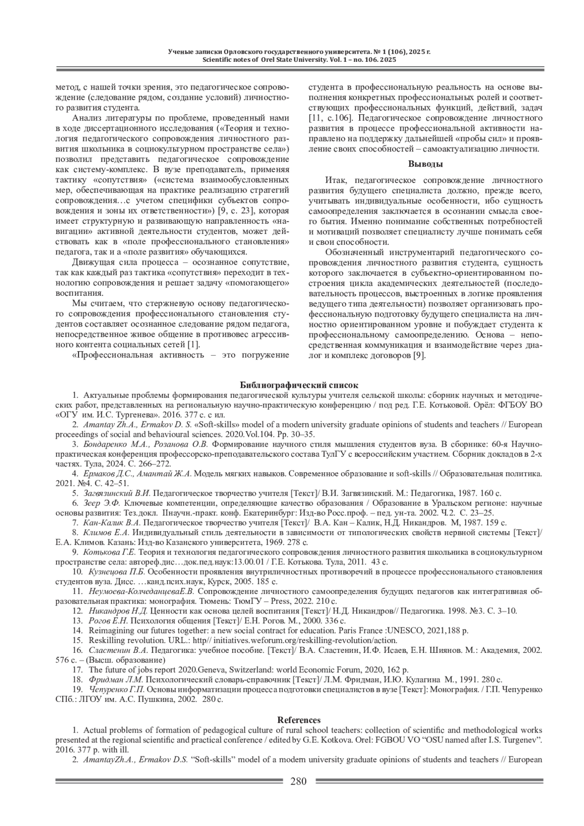 2. Amantay Zh.A., Ermakov D. S. “Soft-skills” model of a modem university graduate opinions of students and teachers // European proceedings of social and behavioural sciences. 2020.Vol.104. Pp. 30-35.