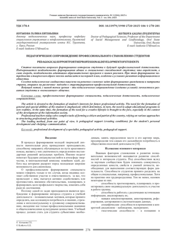 9. Котькова Г.Е. Теория и технология педагогического сопровождения личностного развития школьника в социокультурном пространстве села: автореф.дис..док.пед.наук:13.00.01 / Г.Е. Котькова. Тула, 2011. 43 с. EDN: QHMURR